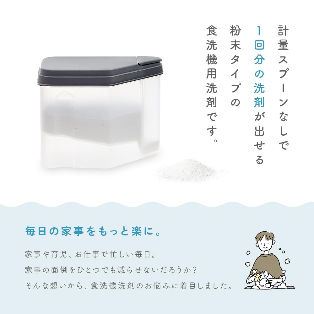 [“Измерительный ящик Хитофури-кун”, чьи права на дизайн (дизайн зарегистрирован) признаны Патентным ведомством Японии] Моющее средство для посудомоечной машины порошкообразного типа, позволяющее дозировать одну дозу моющего средства без мерной ложки. Каждый день заполнен домашними делами, заботой о детях и работой... Можно ли уменьшить хотя бы одну из хлопот, связанных с домашними делами? Желая облегчить ежедневную работу по дому, мы сосредоточились на проблемах, с которыми сталкиваются моющие средства для посудомоечных машин, и разработали этот продукт.. Благодаря простому дизайну он выглядит стильно даже на кухне, а тонкая форма позволяет разместить его в любом зазоре.