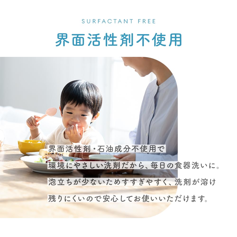 [Без поверхностно-активных веществ] Это экологически чистое моющее средство, в котором не используются поверхностно-активные вещества или нефтяные компоненты, поэтому его можно использовать для ежедневного мытья посуды.. Его легко смывать, так как он не образует обильной пены и моющее средство не растворяется.