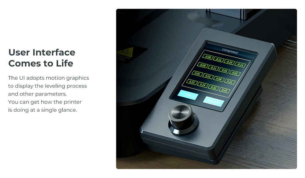 Оптимизированный пользовательский интерфейс наглядно отображает процесс автоматического выравнивания и параметры печати.