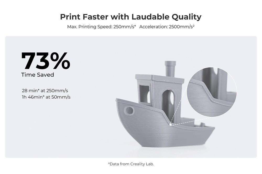 3D-принтер Creality Ender-3 V3 SE может печатать со скоростью до 250 мм/с, сохраняя при этом качество печати.