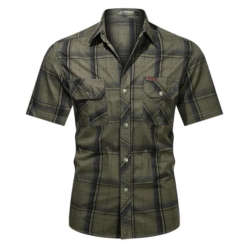 Мужские летние рубашки в клетку с короткими рукавами, мужские военные рубашки для активного отдыха с несколькими карманами, высококачественные мужские рубашки из хлопка, размер 5XL