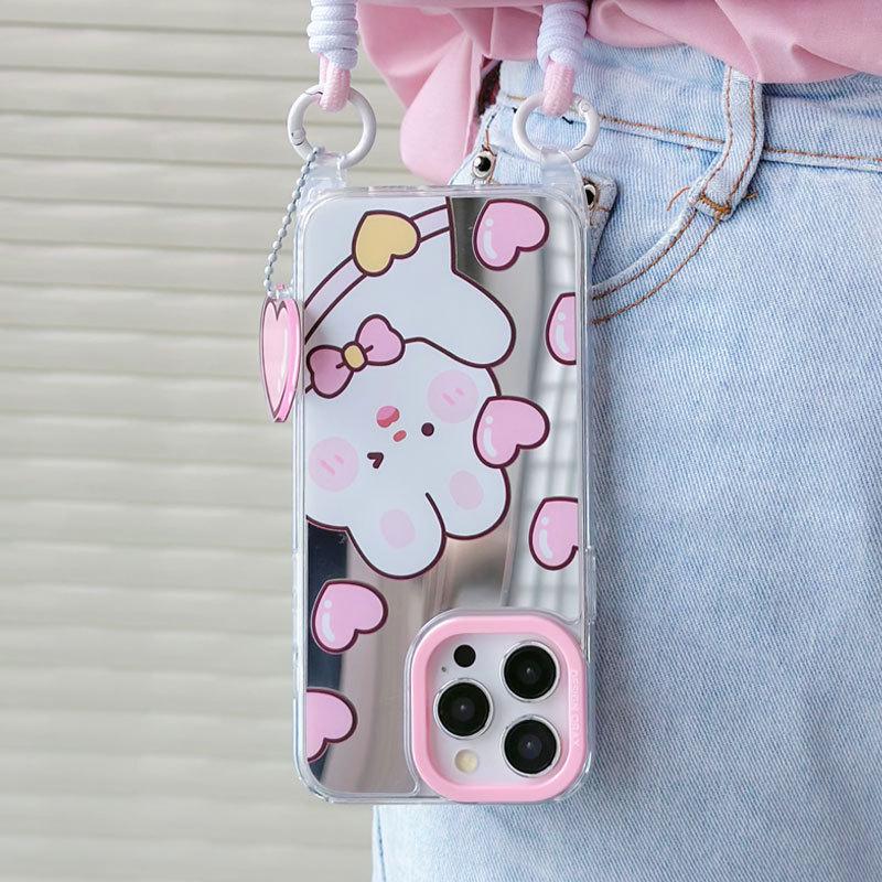 Zhitai Мультяшный чехол-зеркало для iPhone 13, 14 Pro Max, 15 Pro со шнурком