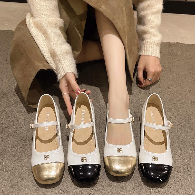 Французские туфли Мэри Джейн на толстом каблуке женские 2025 новые юбка весна и осень лакированная кожа маленькие кожаные туфли ремешок с одной пряжкой туфли бабушки