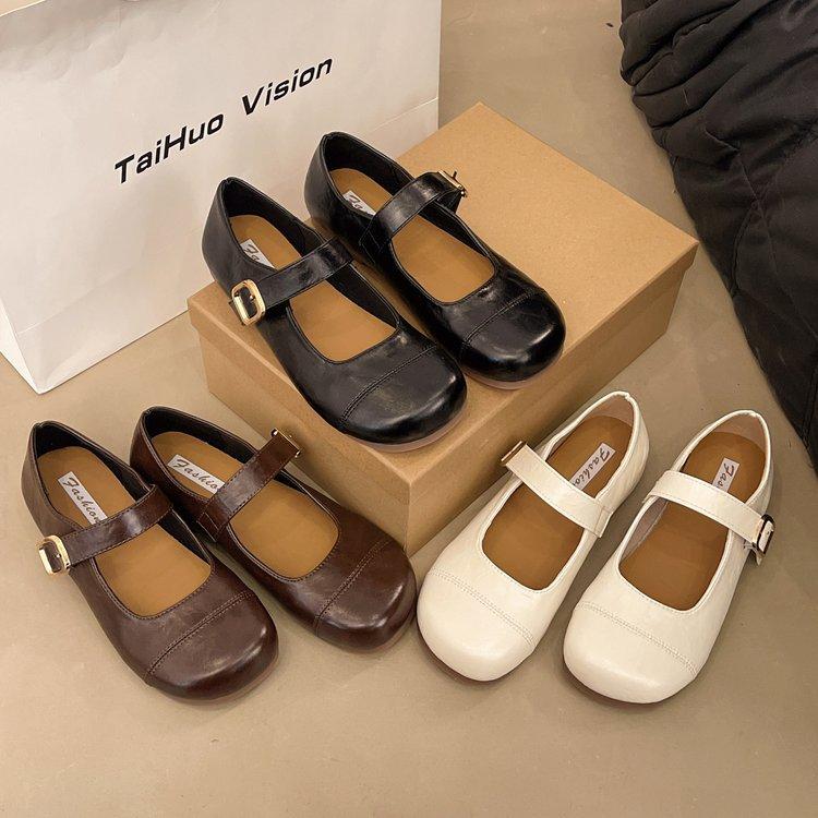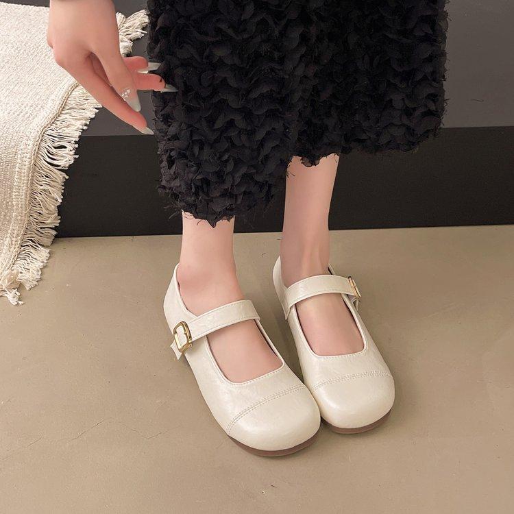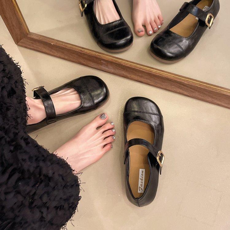 Корейская версия неглубокого рта слово с круглой головкой туфли Мэри Джейн женские туфли мягкая подошва 2025 весна новые французские ретро одинарные туфли на плоской подошве