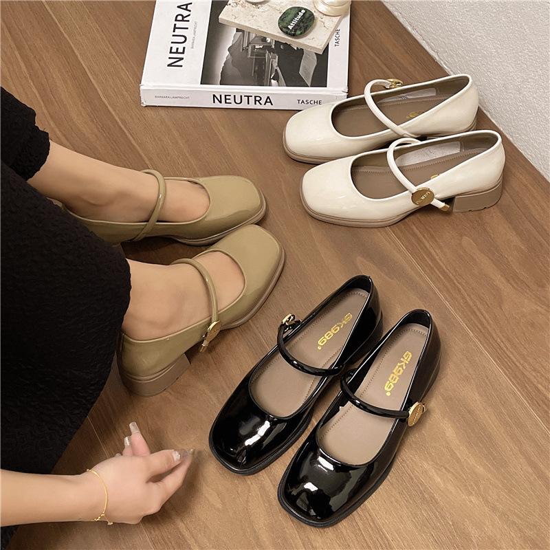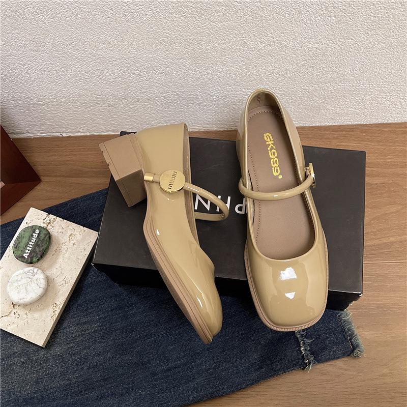 2024 новый темперамент Шу лакированная кожа женские повседневные милые туфли Мэри Джейн на толстом каблуке квадратная головка средний каблук светлый рот одинарные туфли женские