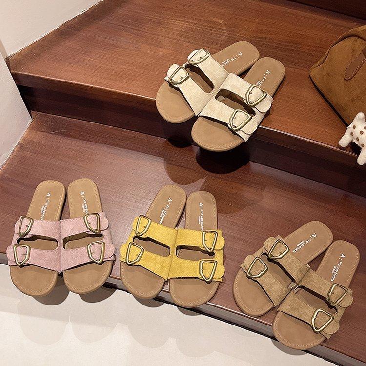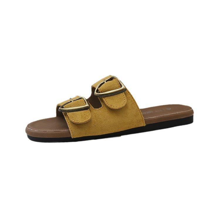 2025 летние новые тапочки Boken на плоской подошве женская верхняя одежда с пряжкой на поясе с плоской подошвой односложные мягкие повседневные сандалии