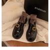 Весна 2025 года, новые туфли в британском стиле с квадратной пряжкой, толстой подошвой, толстым каблуком, круглым носком, мягкие кожаные мокасины, маленькие кожаные туфли для женщин