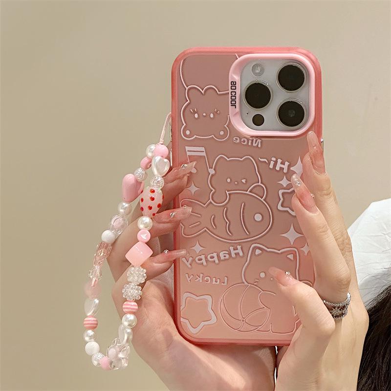 Чехол Zhitai Cartoon Frosted Laser для iPhone 14/15Pro/16ProMax, с браслетом