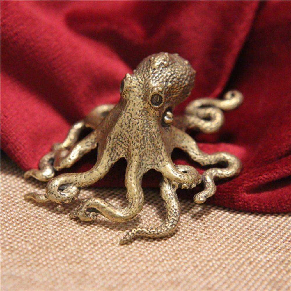 Латунные украшения дома в виде осьминога, антикварные медные фигурки животных, миниатюрные настольные украшения, аксессуары, креативный стол, чай, домашние животные, ремесло