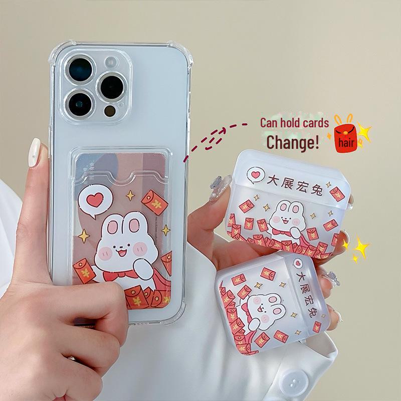 Чехол Zhitai для iPhone 14/13/12Pro с держателем для карт и мультяшным дизайном, совместимый с 15 и чехлом для наушников Niche 2/3 поколения