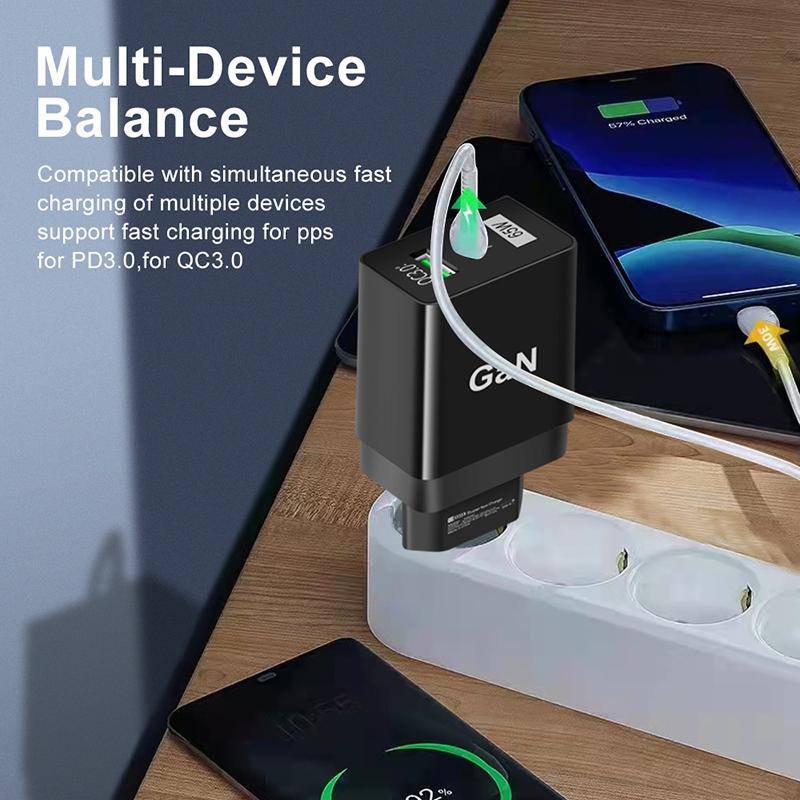 Вилка США/ЕС/Великобритания 65 Вт GaN быстрое зарядное устройство QC3.0 USB+Type-C PD для IOS Android зарядка 5 В/6,6 А 9 В/3 А 12 В/2,75 А 20 В/1,67 А быстрая зарядка