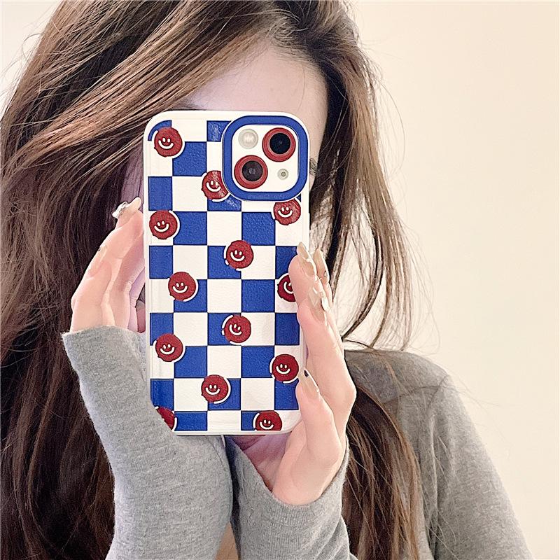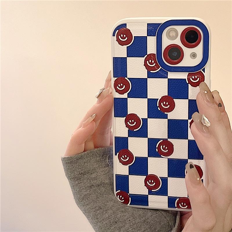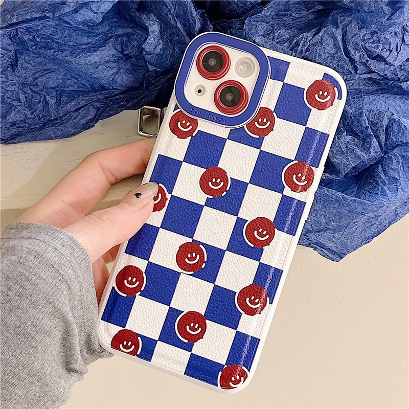 Кожаная шахматная доска Zhitai Смайлик Чехол для телефона для iPhone XS Max/11/13 Pro/14