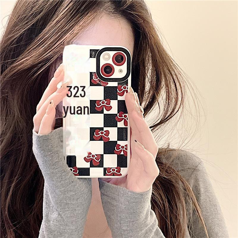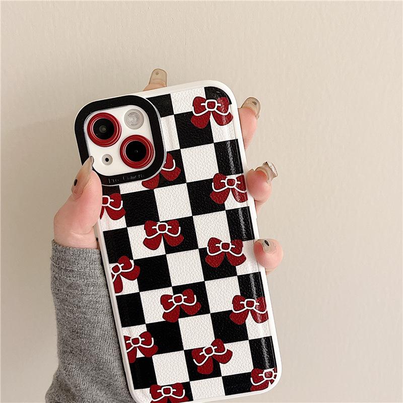 Zhitai Leather Checkerboard Case for iPhone 11/13 Pro Max/14, Bow Design