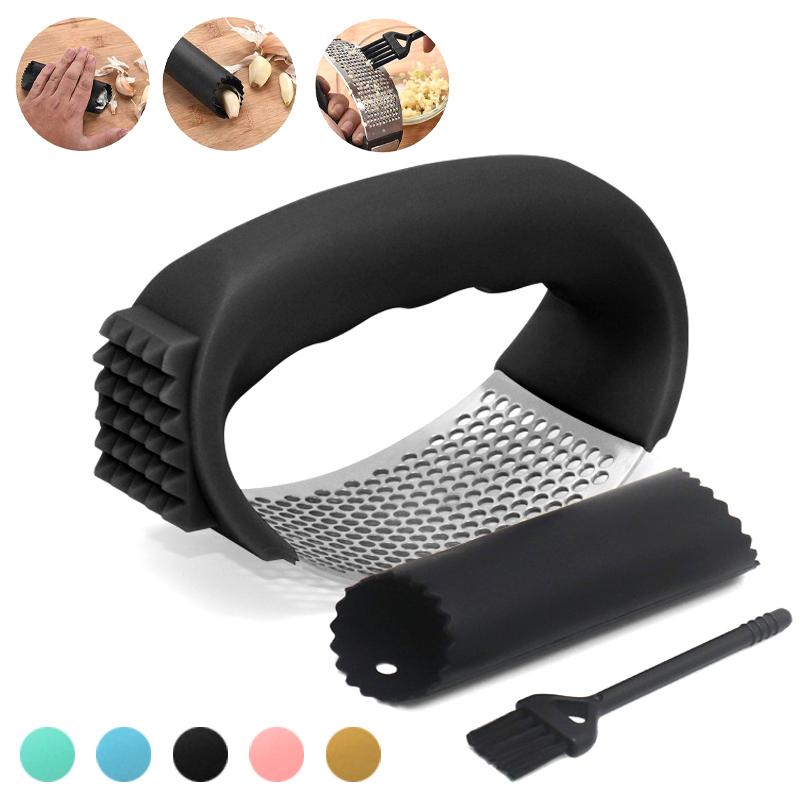 Чеснокодавилка с овощечисткой и щеткой для очистки, чесночница, измельчитель чеснока, ручной кухонный комбайн для измельчения чеснока