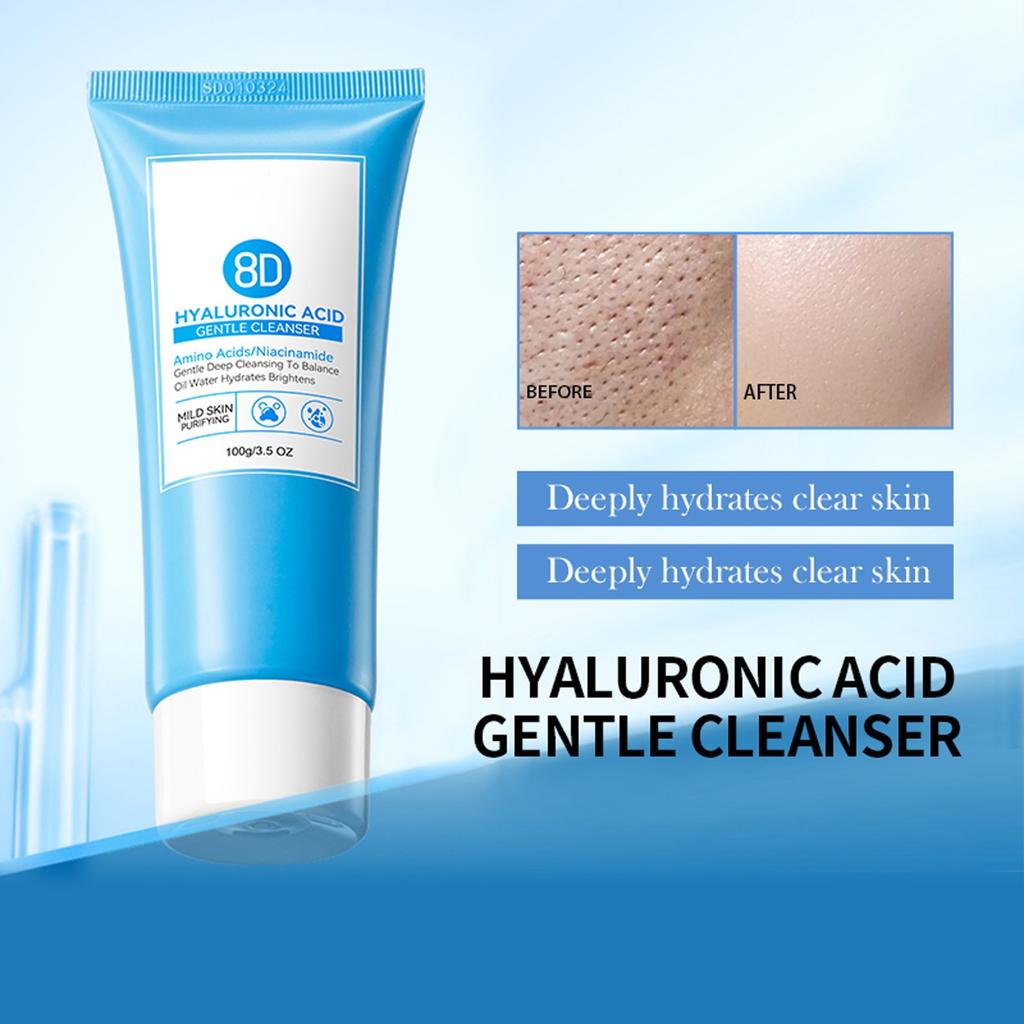 8D Гиалуроновая кислота Мягкое очищающее средство, против морщин, делает кожу здоровой, увлажненной, гладкой и не стянутой, 100