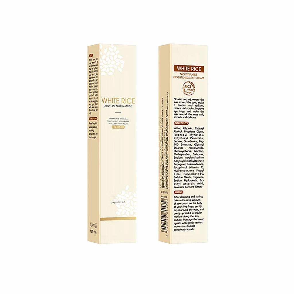 Это осветляющее и увлажняющее средство на основе риса — высококачественный выбор для ухода за кожей вокруг глаз.. Он сочетает в себе два основных ингредиента: экстракт риса и . Экстракт риса содержит различные питательные вещества и может мягко восполнять запасы влаги в коже вокруг глаз, поддерживая ее увлажненность в любое время и эффективно устраняя проблемы, связанные с сухостью.. обладает превосходным осветляющим эффектом, который может подавлять выработку меланина вокруг глаз, уменьшать темные круги и постепенно осветлять кожу вокруг глаз после длительного использования.