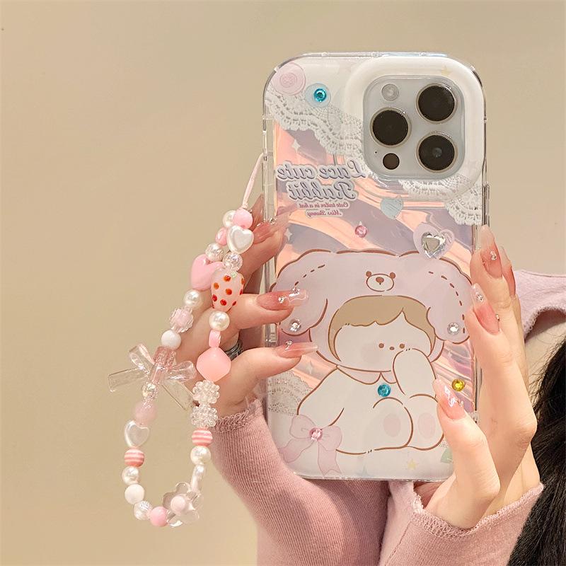 Zhitai iPhone Case for iPhone 12/11/14 - Fits 15Pro & 16ProMax - Cartoon Design with Bracelet — купить товар онлайн с бесплатной доставкой до всему миру!