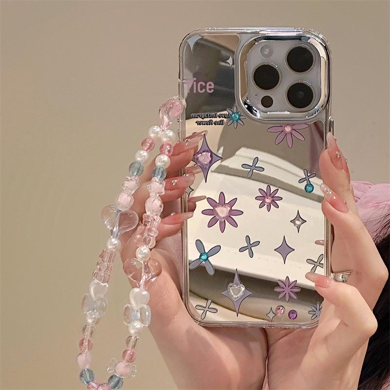 Чехол Zhitai Ins Style для iPhone 15 Pro: Зеркальный, браслет, ювелирные изделия с бриллиантами, совместимые с моделями Apple 12/13 Pro/14/16
