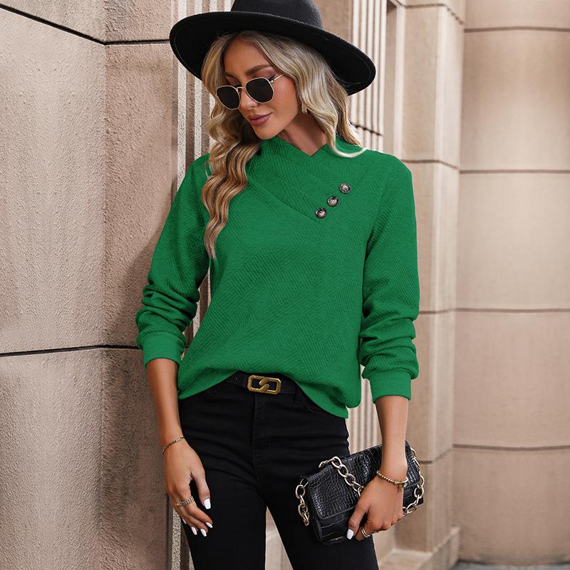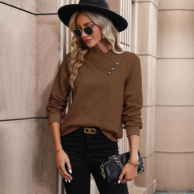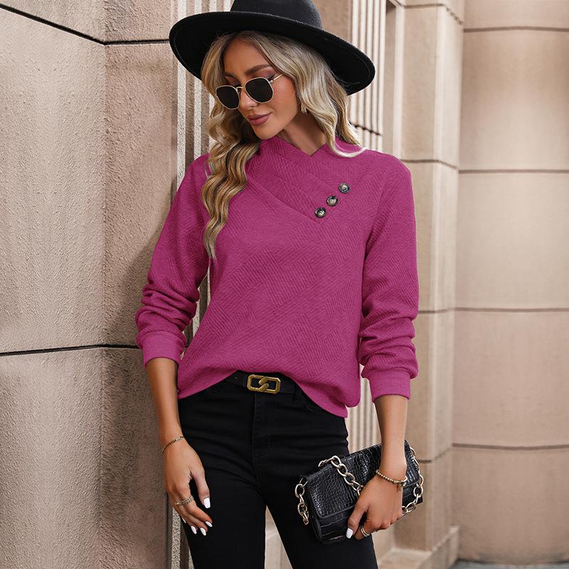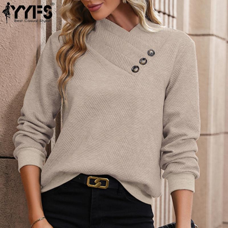 YYFS Женские модные повседневные весенне-осенние однотонные блузки и рубашки с v-образным вырезом и длинным рукавом с принтом