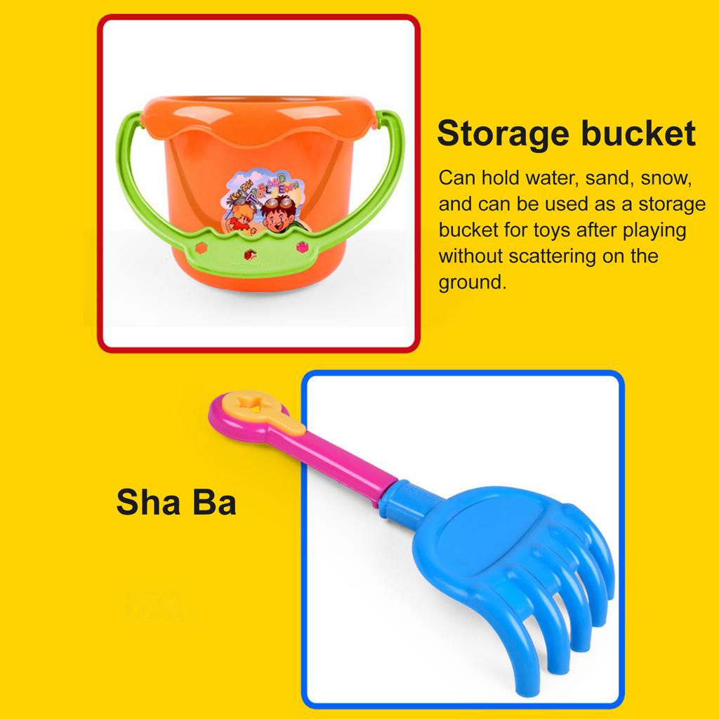 Портативные и пляжные игрушки: Оснащен складным пляжным ведром и сетчатой сумкой, что делает его более удобным для пляжных путешествий.. Модернизированное пляжное ведро изготовлено из толстого и складного силикона, который более компактен и прочен, чем пластиковое пляжное ведро.. Сетчатый мешок может фильтровать песок и воду, а также быстро высыхает, что идеально подходит для хранения или переноски пляжных игрушек.. Весь набор пляжных игрушек имеет компактную конструкцию, которая подходит для детского отдыха на свежем воздухе и путешествий, а также занимает мало места в багаже.