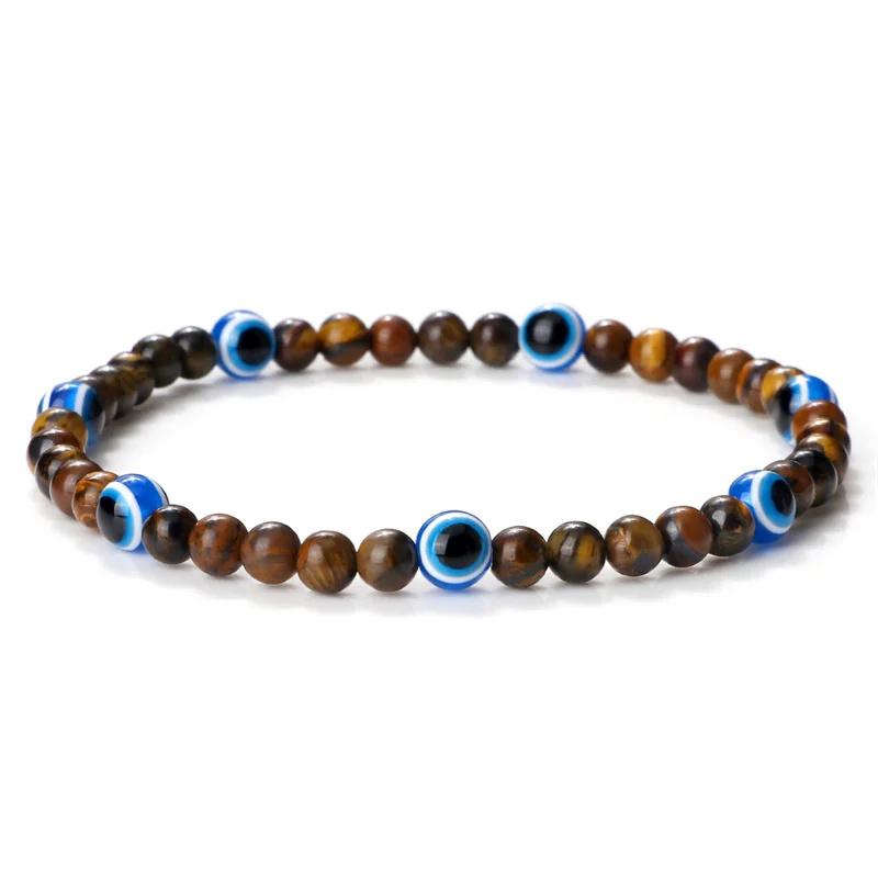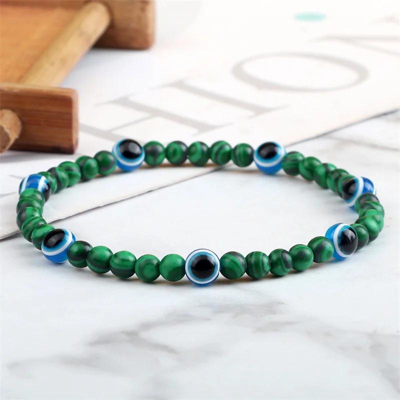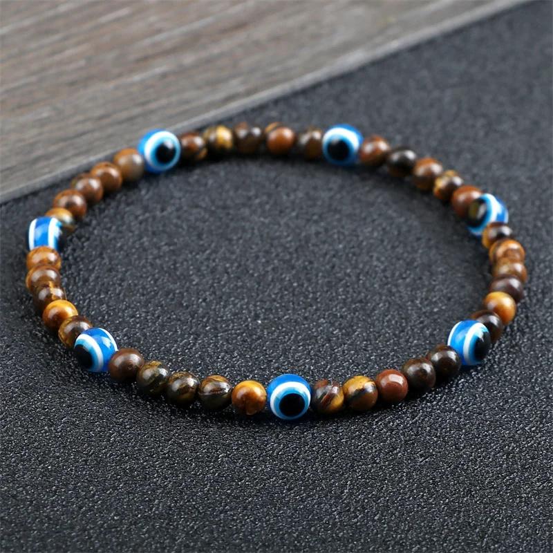 Турецкий синий браслет с дурными глазами 4 мм мини-бусины натуральный тигровый глаз лавовый камень браслеты на удачу для женщин и мужчин ювелирные изделия браслеты Homme