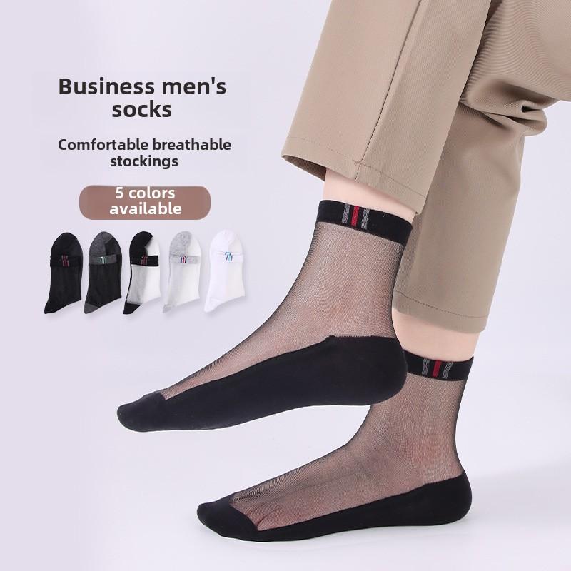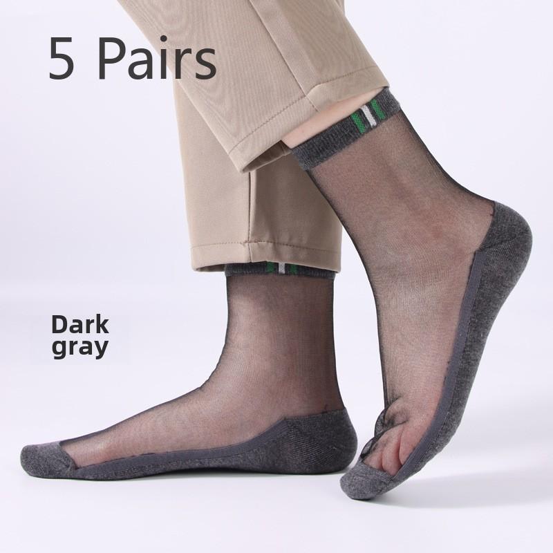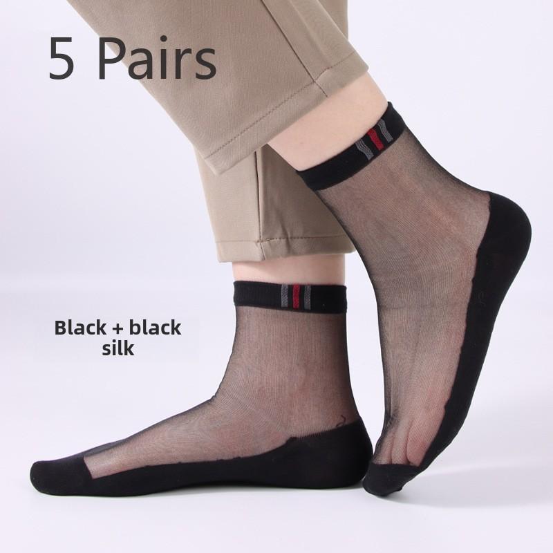 5 пар мужских носков из прозрачного шелка в деловом стиле на весну и лето, простые тонкие чулки из прозрачного шелка