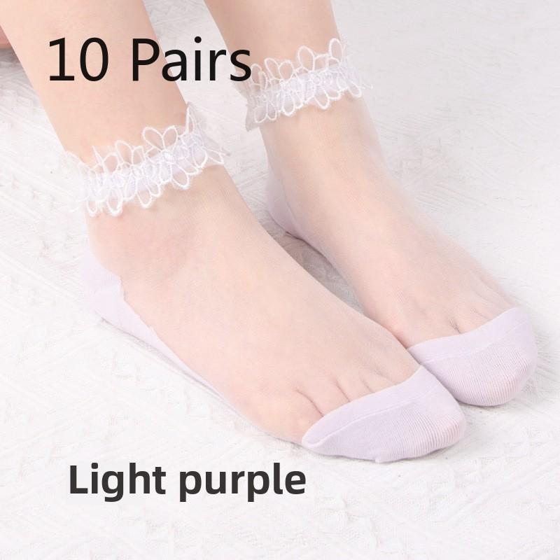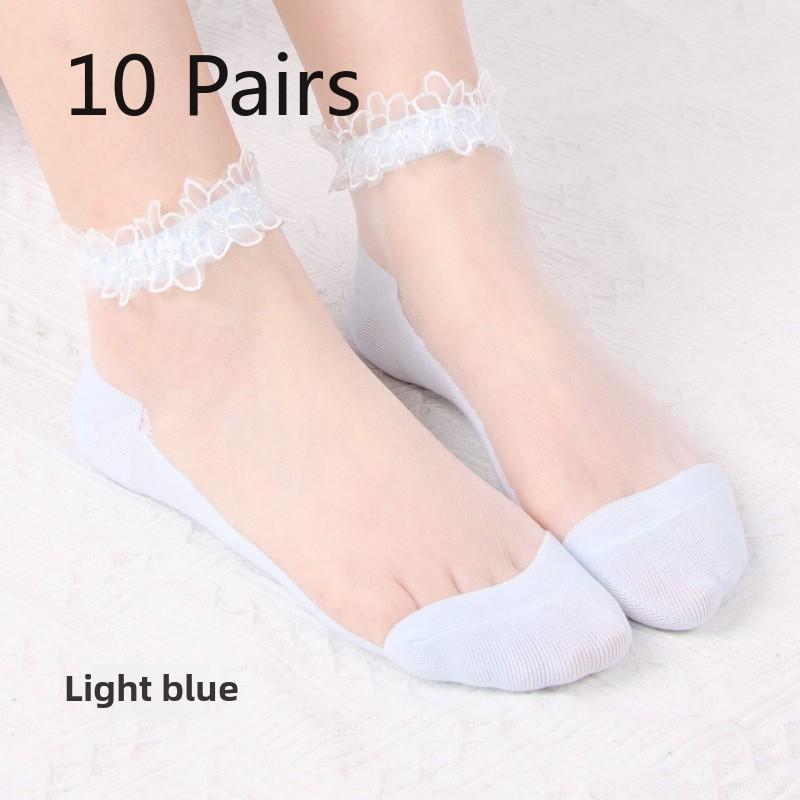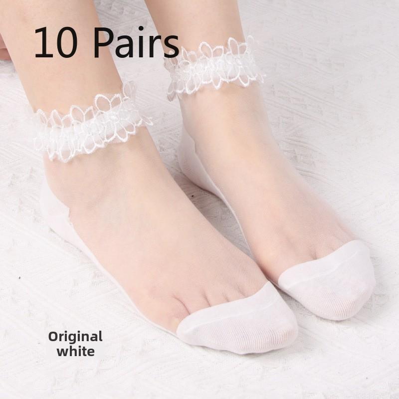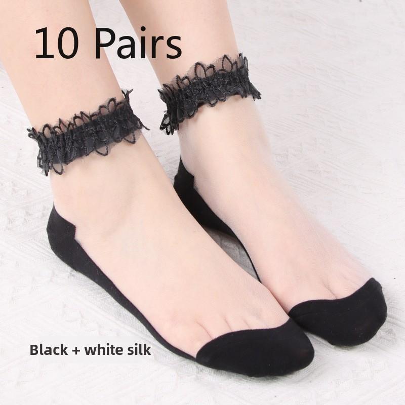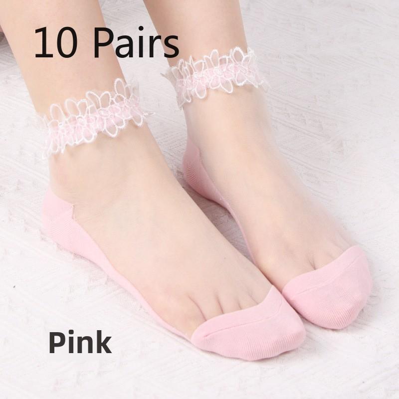 10 пар женских летних тонких прозрачных кружевных женских носков-лодочек с кристаллами и стеклянными чулками для женщин