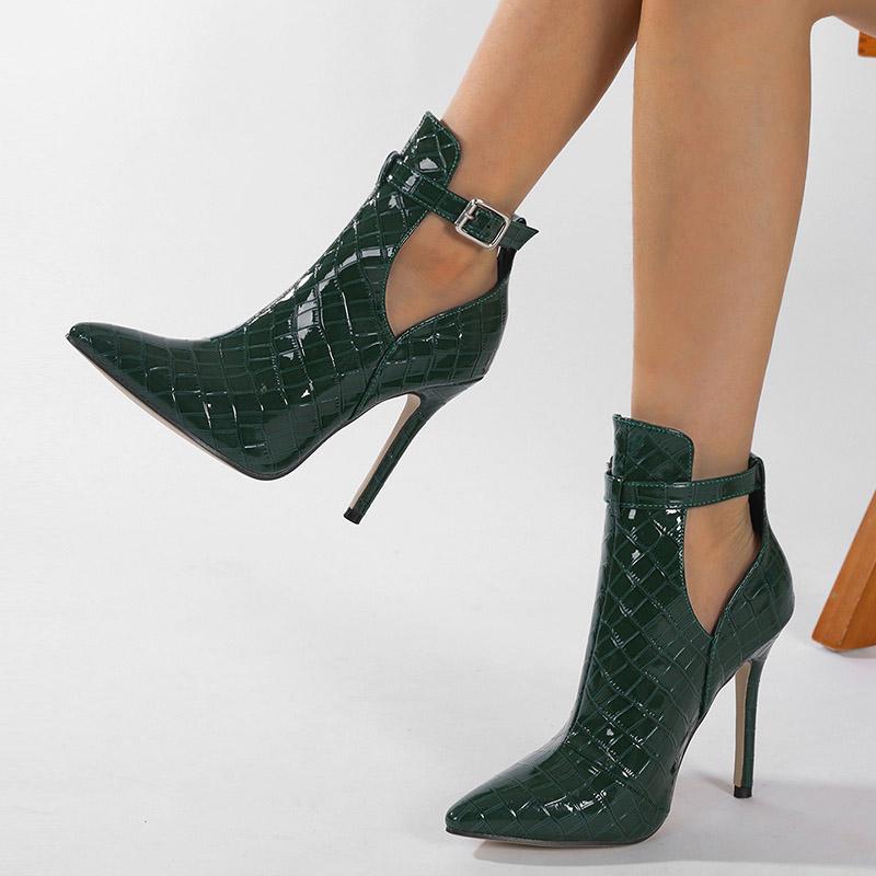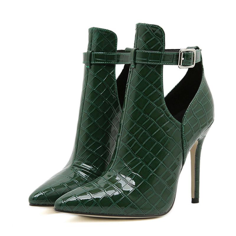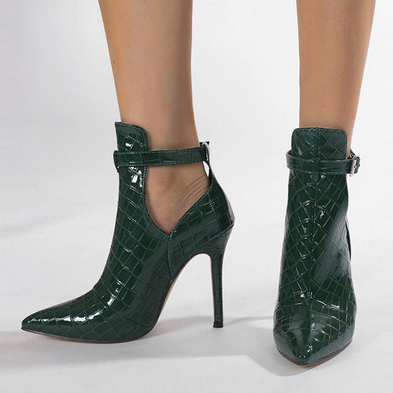 Liyke сексуальные зеленые туфли со змеиным принтом из кожи с острым носком для вечеринок и стриптиза на каблуках, ботильоны для женщин с пряжкой на ремне, весна-осень, туфли-лодочки