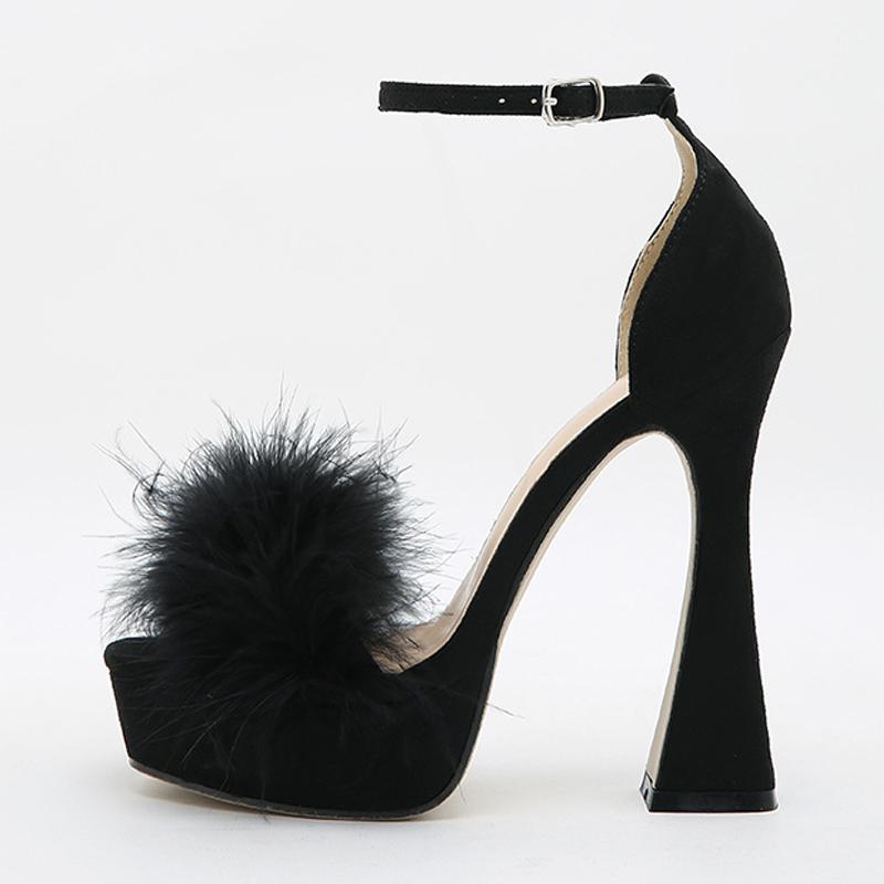 Модные женские сандалии на платформе на пушистом высоком каблуке с розовыми перьями, элегантные свадебные модельные туфли с открытым носком и пряжкой на щиколотке, сандалии