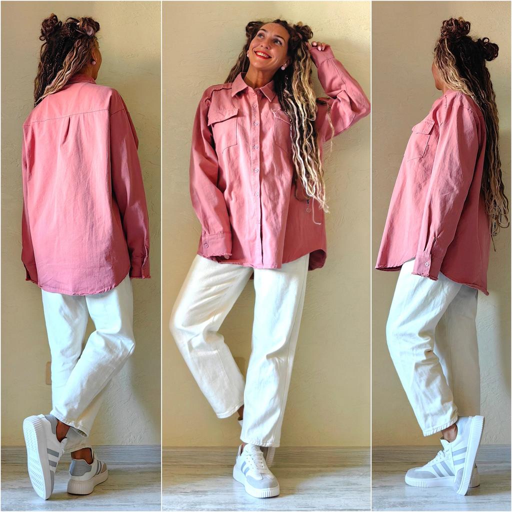Розовая джинсовая рубашка 🌸🩷 Всем солнечный приветик 👋😉 И качественная, и цвет красивый, и на 54 размер сядет и на высокий рост 🤩 Прелесть, а не рубашка 🥰 Заказала размер XXXL На мне села с приличным запасом, а на мамуле отлично по фигуре ☺️ Мамулины параметры: 🎗рост 157см 🎗вес 76кг 🎗длина плеч 42см 🎗объём груди 111см 🎗объём талии 96см 🎗объём бёдер 108см. Мои параметры: 🎗 рост 160см 🎗 вес 53кг 🎗 длина плеч 40см 🎗 объём груди 92см (75D) 🎗 объём талии 63см 🎗 объём бёдер 92см. Качество: 🌸 деним 🩷 ткань плотная, но мягкая 🌸 не тянется и не светит 🩷 по краю манжет и на плечах полосками немного дранинки 🌸 воротник как у рубашки 🩷 застёгивается от самого верха и почти до самого низа на небольшие пластиковые пуговицы в цвет рубашке 🌸 на манжетах пр одной пуговице 🩷 на груди по карману, которые закрываются клапанами 🌸 швы ровные 🩷 качество отличное. Точные замеры рубашки в размере XXXL: 📏 ОГ - 122см 📏 ОТ - 124см 📏 объём низа рубашки - 128см 📏 плечи - 49см 📏 длина рукава от воротника - 77см 📏 длина рукава от плечевого шва - 61см 📏 длина рубашки от плеча - 76см 📏 объём проймы - 48см 📏 объём манжеты - 20см. Мы рубашкой довольны очень-очень и рекомендуем её всеми ручками 🤗💞 Спасибо, продавцу и Джуму 😘 Чмок-чмок-чмок, всех кто со мной на Джуме 😘 Желаю удачных покупок 🛍😊 терпения 🤗 и весны в душе 🌈☀️🌱🦋🌼💕🐞🌳🕊 До скорого 🙌😊 Песня во втором видео: Klaas, Michael Roman & Mazza «Humn» (Remix)🎶💃🎶