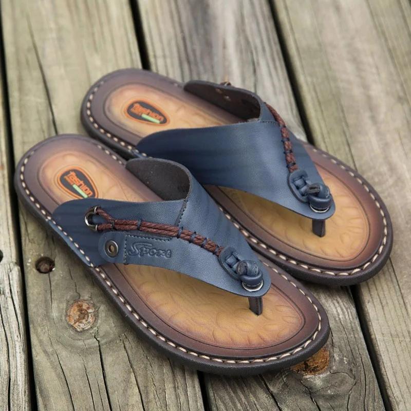 2025 Новые летние кожаные шлепанцы ручной работы, модные мужские шлепанцы, уличные дышащие удобные мужские и простые сандалии