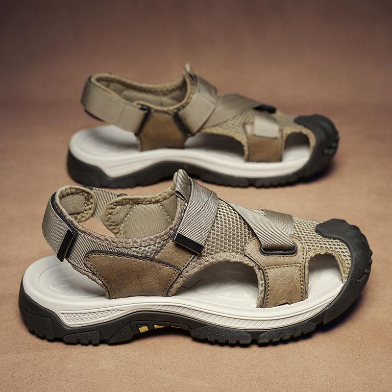 Мужские летние дышащие новые высококачественные пляжные туфли из натуральной кожи, мужские повседневные сандалии для альпинизма с выемками