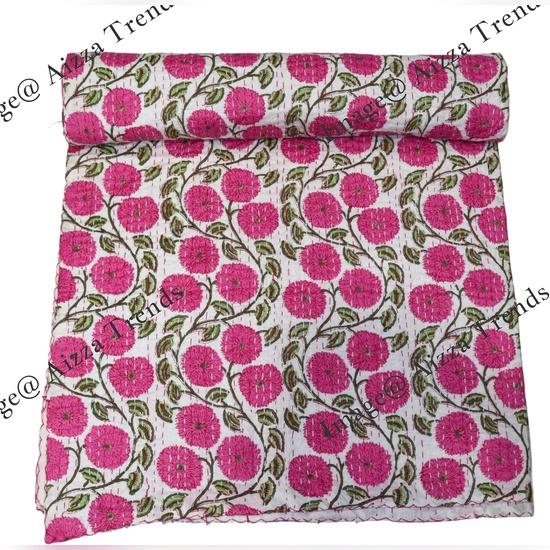 Aizza Trends Стеганое покрывало Канха из чистого хлопка ручной работы с принтом - Традиционный вид Покрывало Канха Гудри - Винтажное ручное шитье Гудри