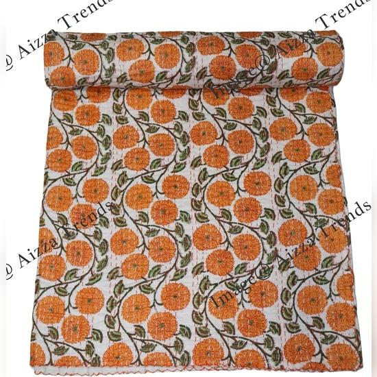 Aizza Trends Стеганое покрывало Канха из чистого хлопка ручной работы с принтом - Традиционный вид Покрывало Канха Гудри - Винтажное ручное шитье Гудри