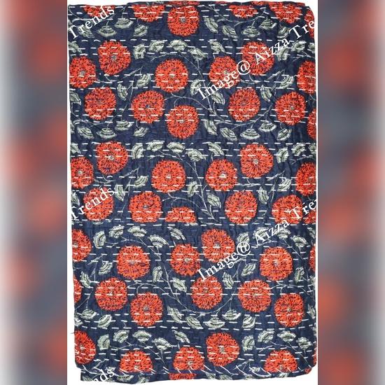 Aizza Trends Стеганое покрывало Канха из чистого хлопка ручной работы с принтом - Традиционный вид Покрывало Канха Гудри - Винтажное ручное шитье Гудри