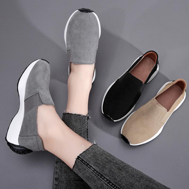 Осенняя женская обувь из коровьей замши, кроссовки-слайдеры, женские мокасины, женская обувь, черная обувь для кормления, женская рабочая обувь, Mujer