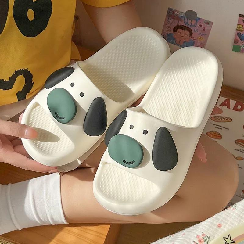 Женские милые сандалии Cloud, летние 2025 г., новые милые шлепанцы с мультяшными ушами и собачками, женские повседневные удобные комнатные домашние пляжные шлепанцы
