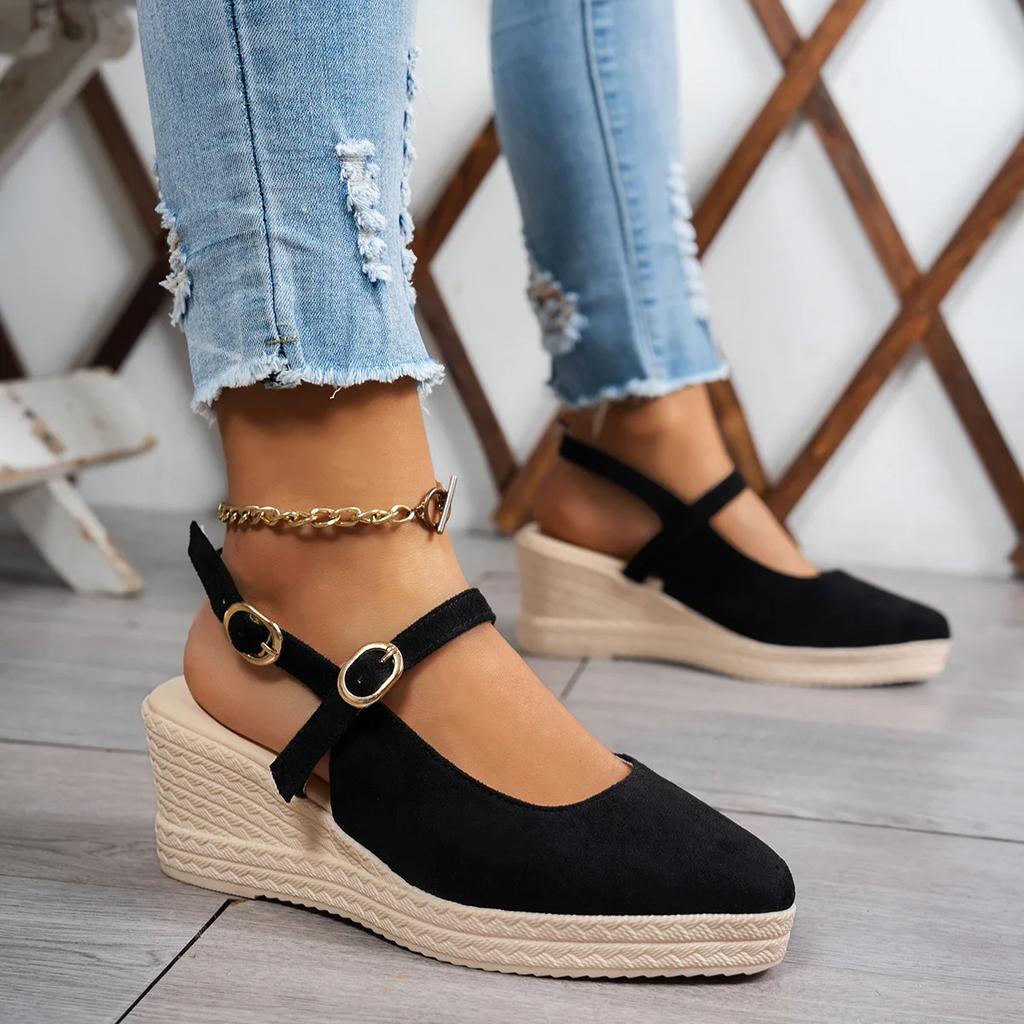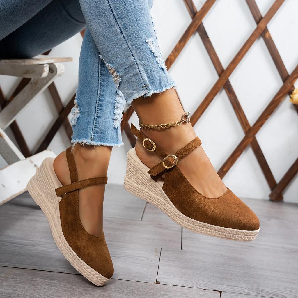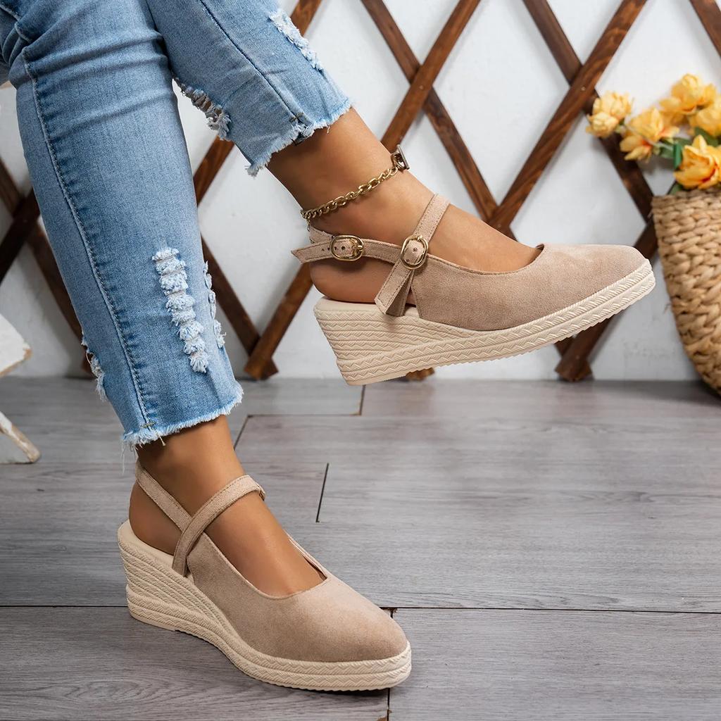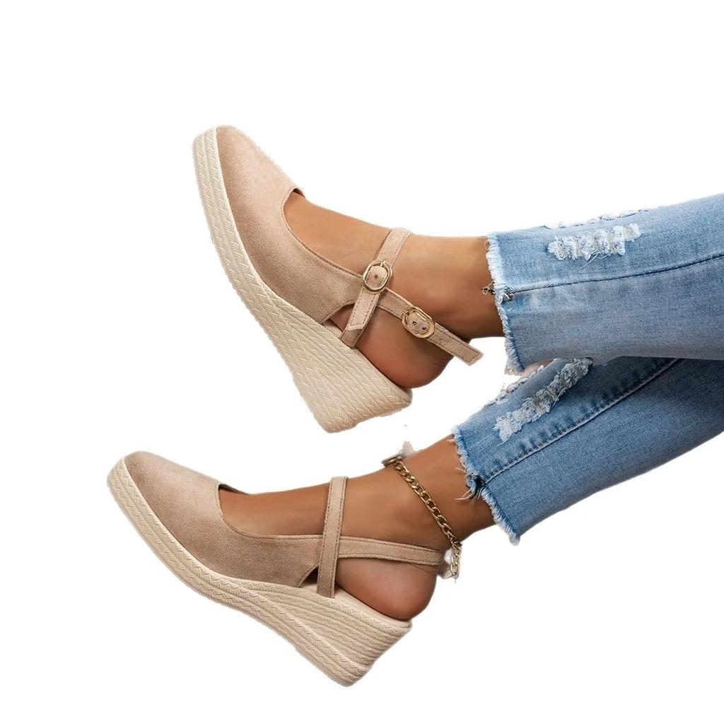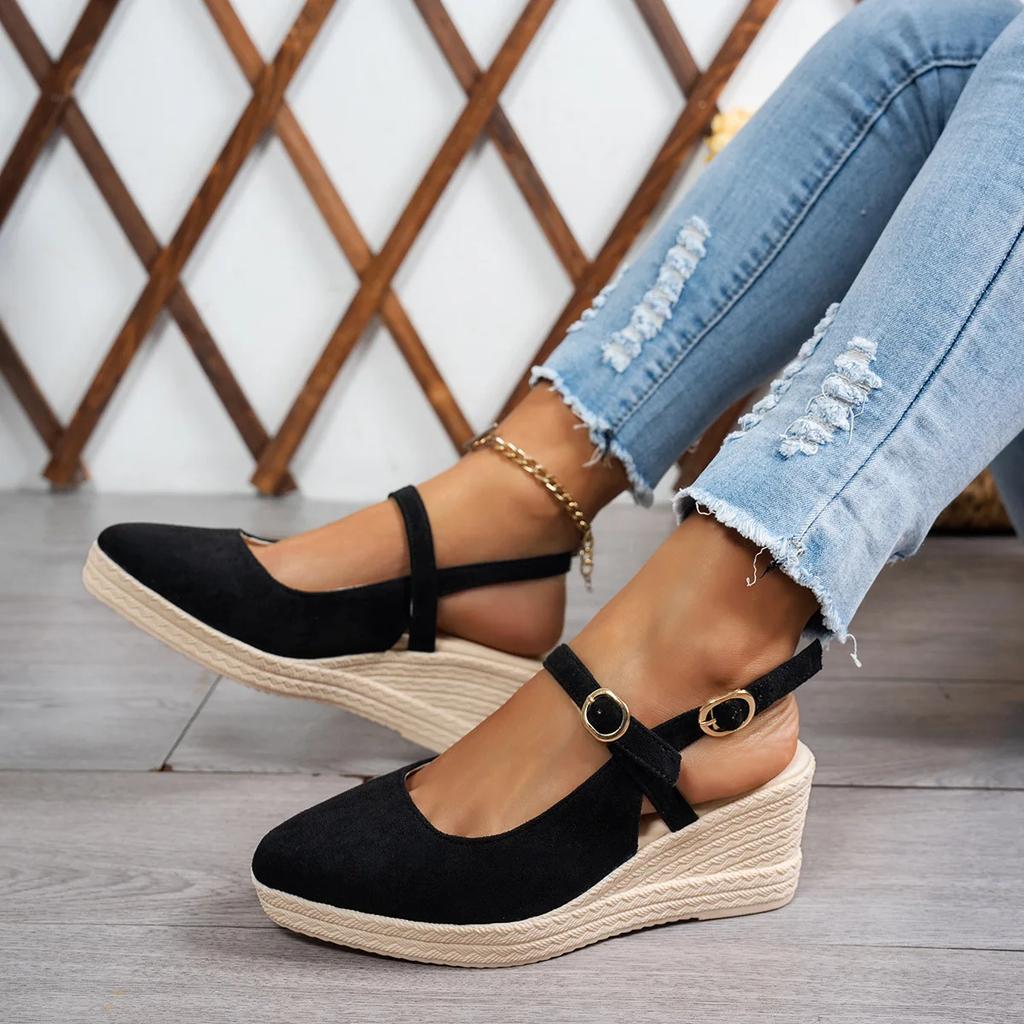 Женские плетеные босоножки на толстом каблуке-танкетке, женские босоножки на платформе, весенние новые замшевые туфли на высоком каблуке с острым ремешком, модные туфли на толстой подошве