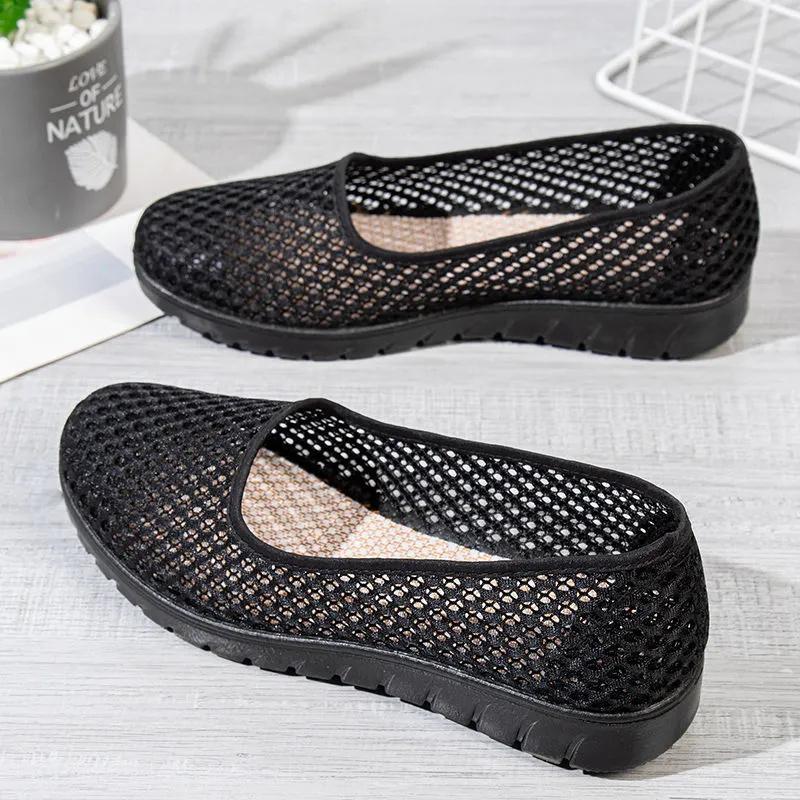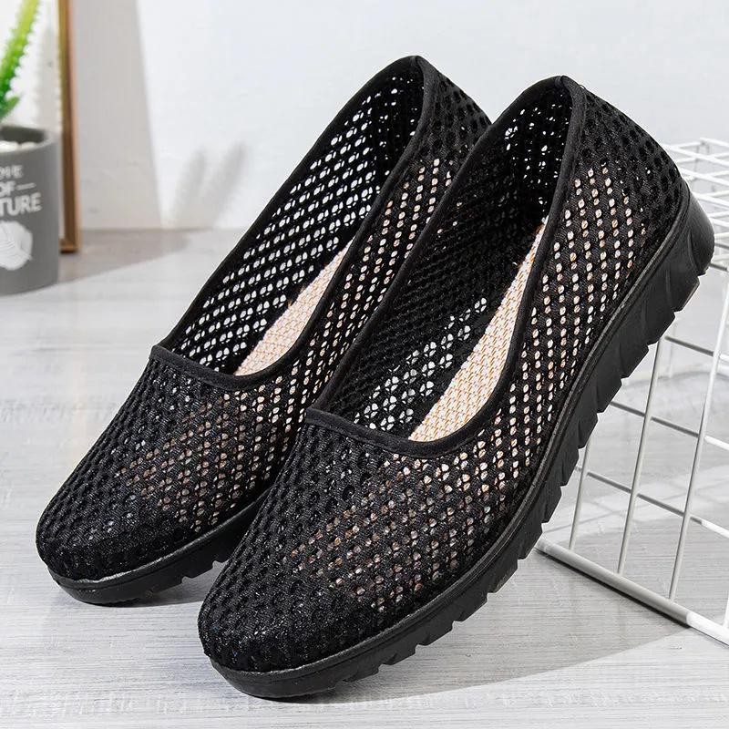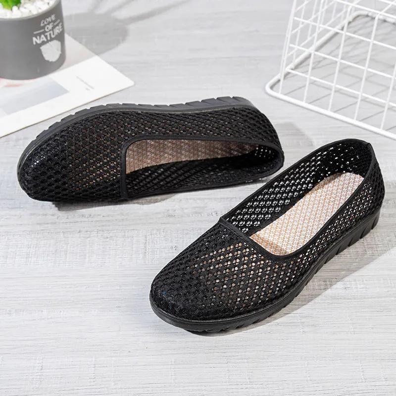 Женская мода милые легкие сетчатые дышащие весенние нескользящие туфли на плоской подошве женские классические удобные черные туфли ba301