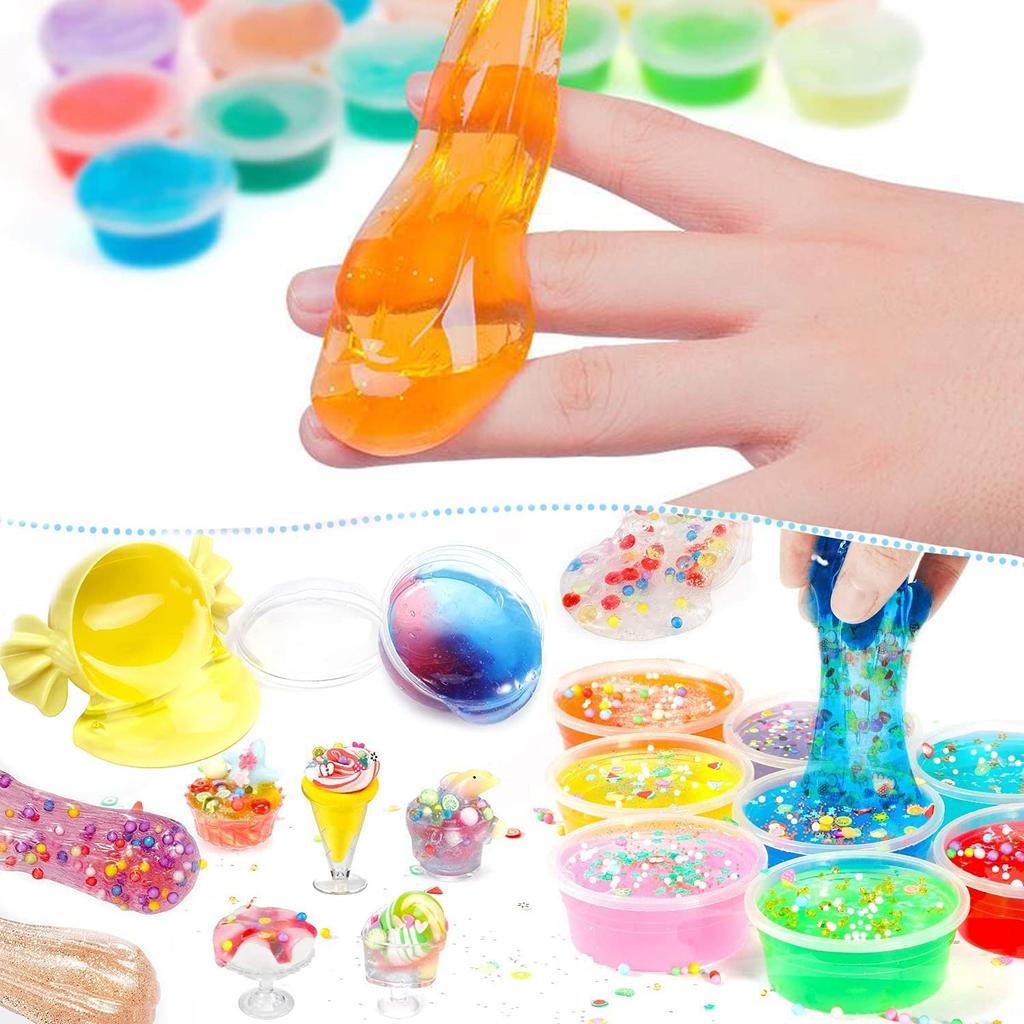 Набор для изготовления слайма с большим разнообразием вариаций! Создавайте собственные вариации слайма разных цветов и 91 различных аксессуаров, таких как сверкающий кристаллический слайм, фруктовый слайм, хрустящий слайм и слайм из пенопласта, разминайте и придавайте им форму кончиками пальцев, и это будет познавательно! Концентрация внимания у ребенка также значительно улучшилась.