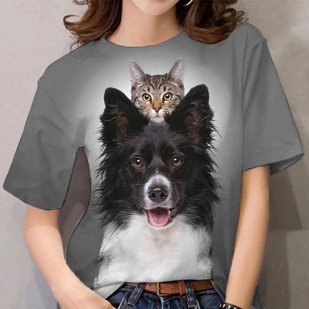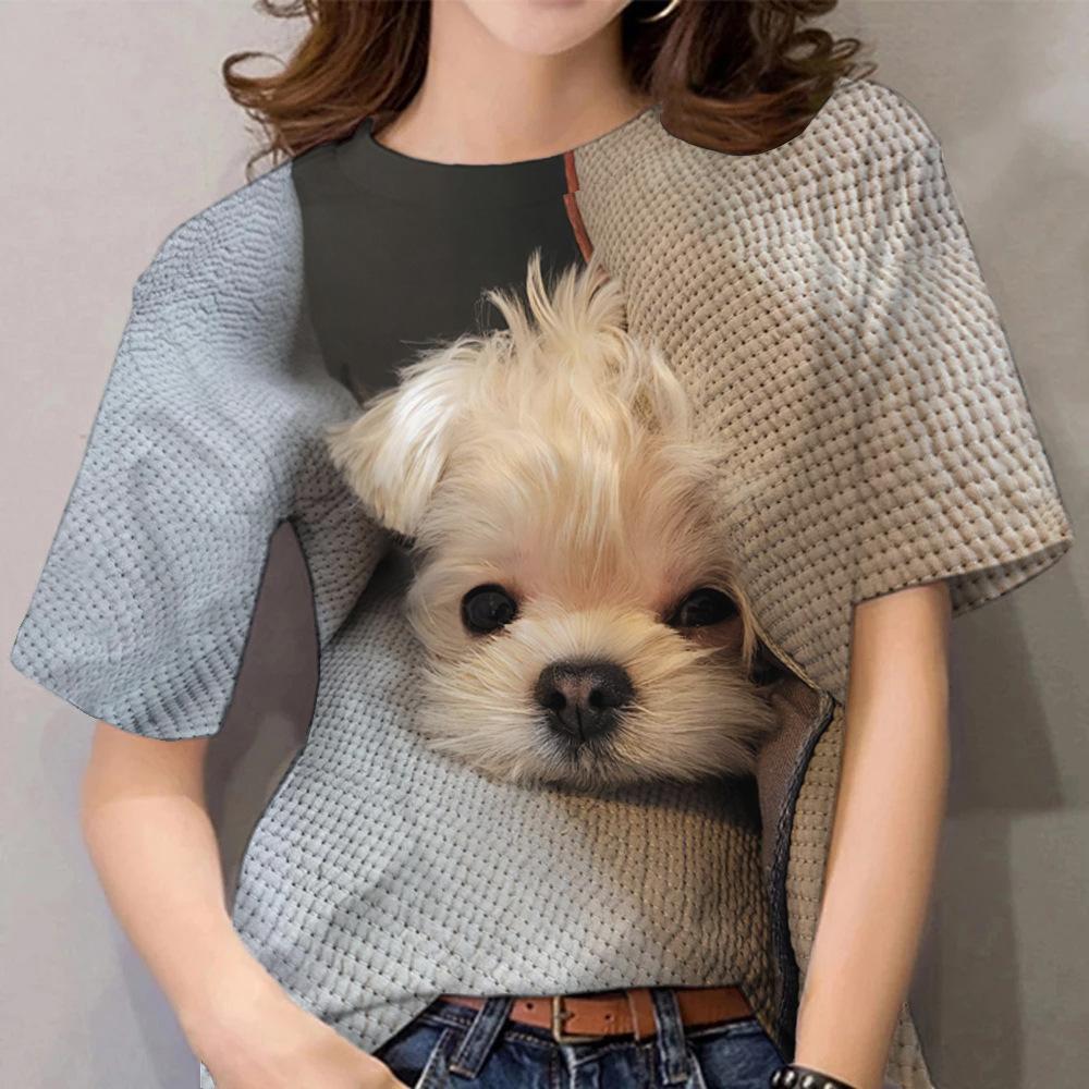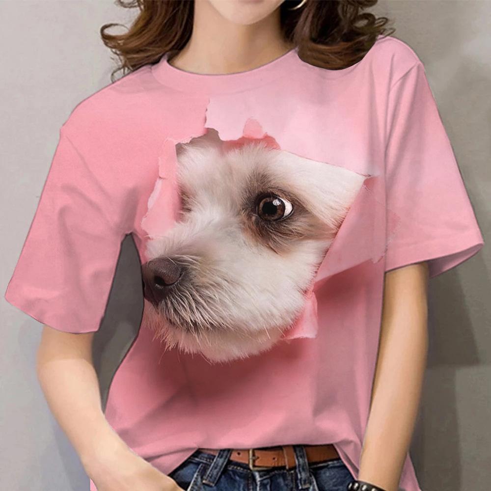 Летний топ с круглым вырезом и принтом 3D-собаки, модные повседневные женские футболки с короткими рукавами