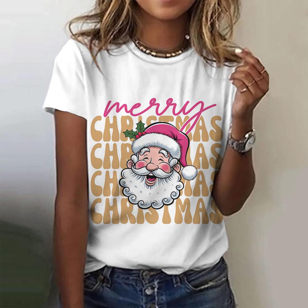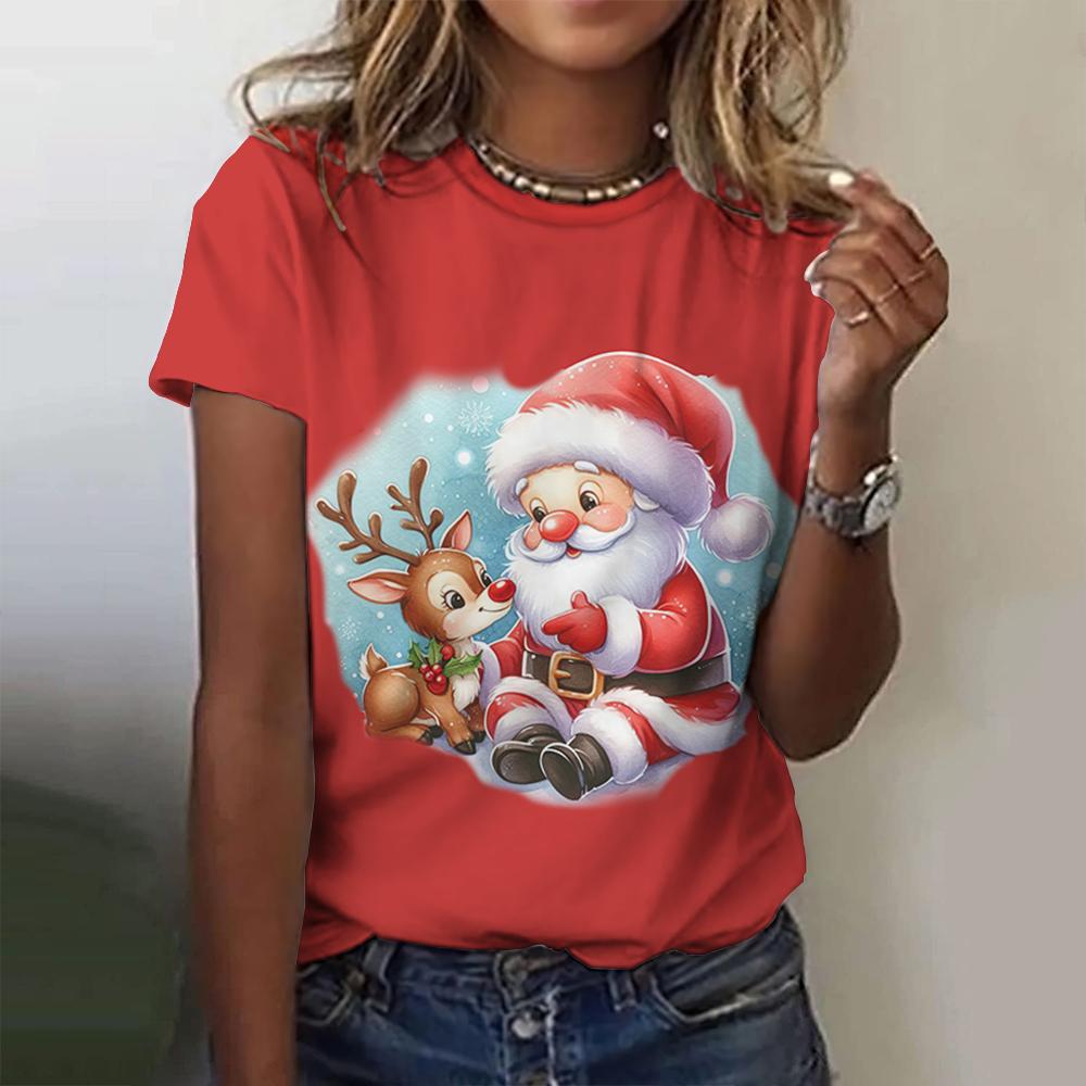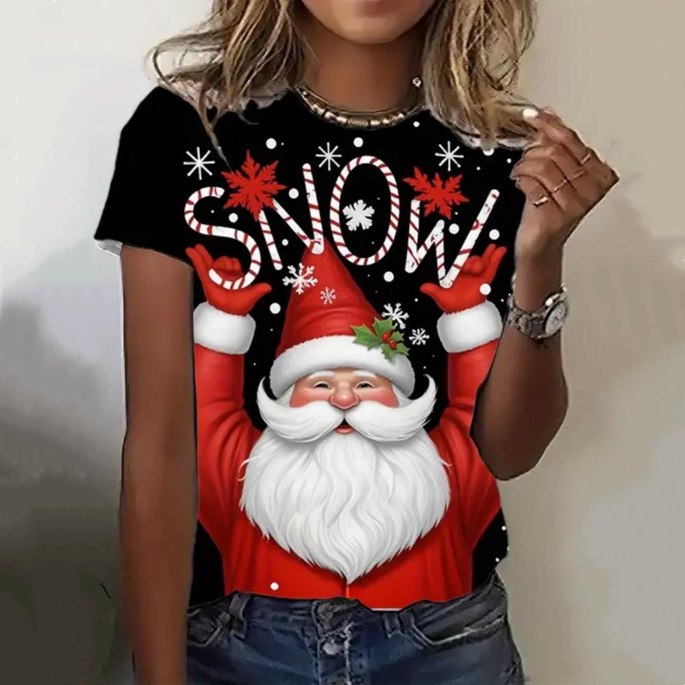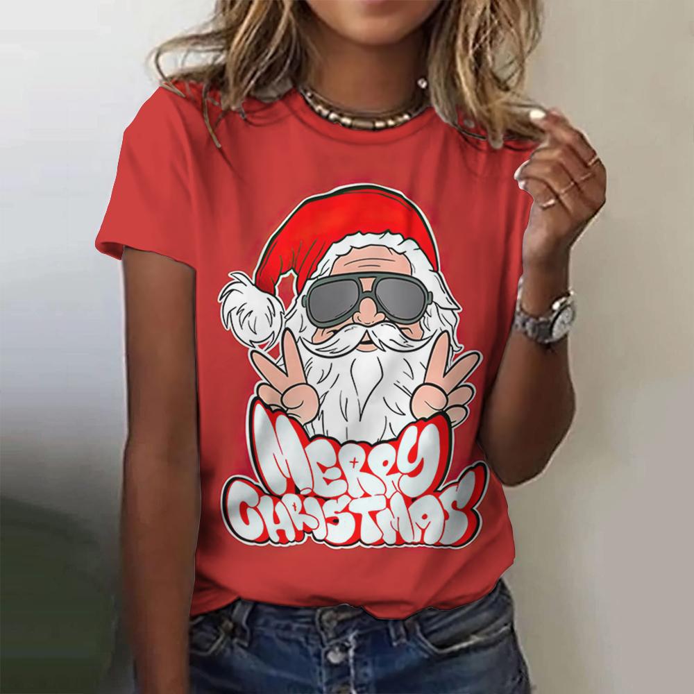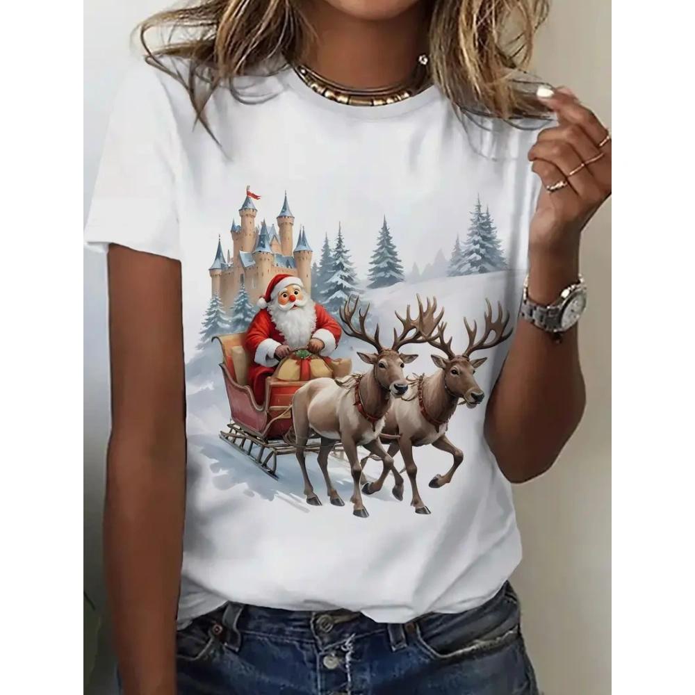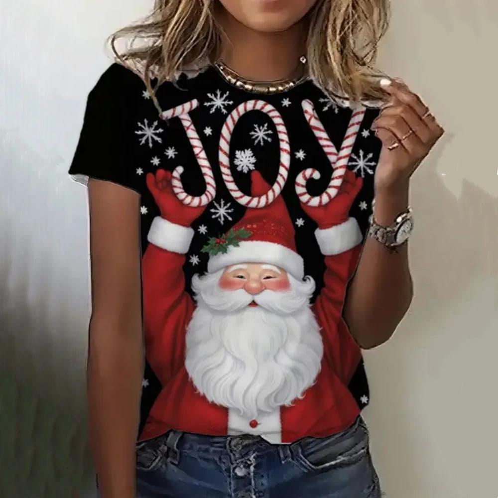 Летний топ с круглым вырезом и 3D рождественским принтом, модные повседневные женские футболки с короткими рукавами