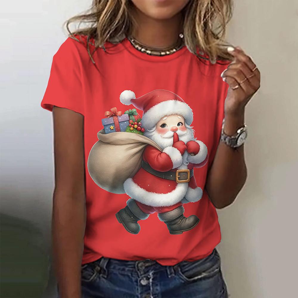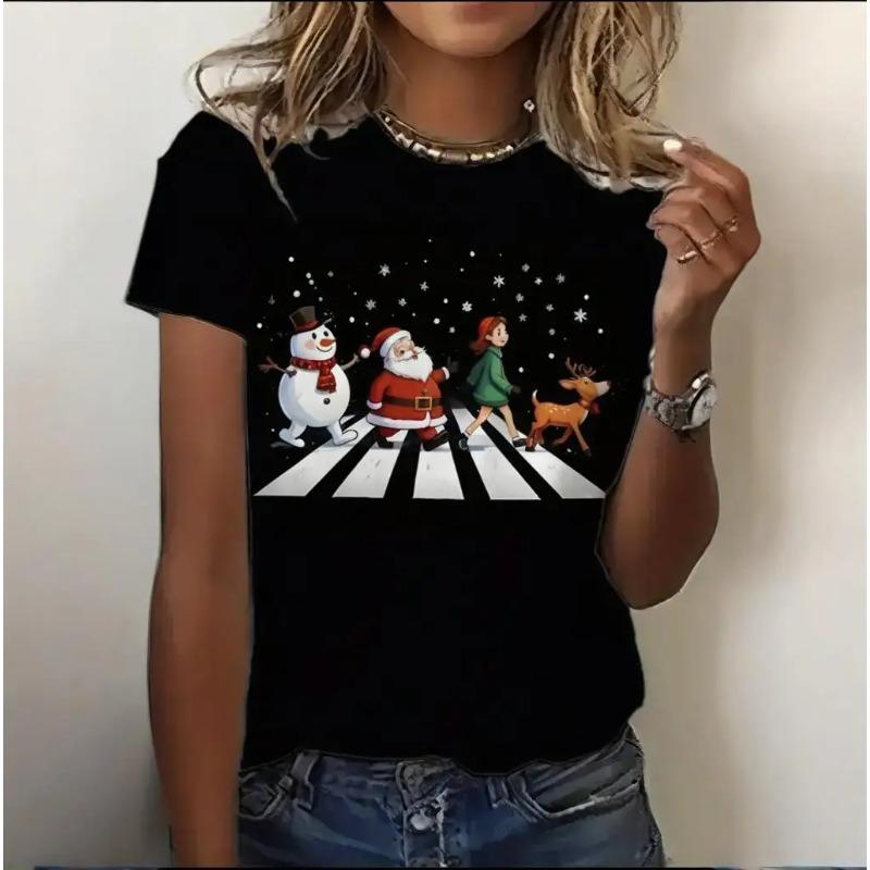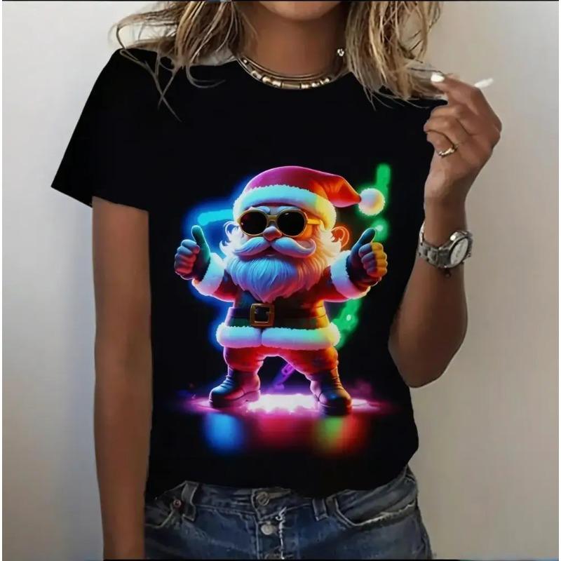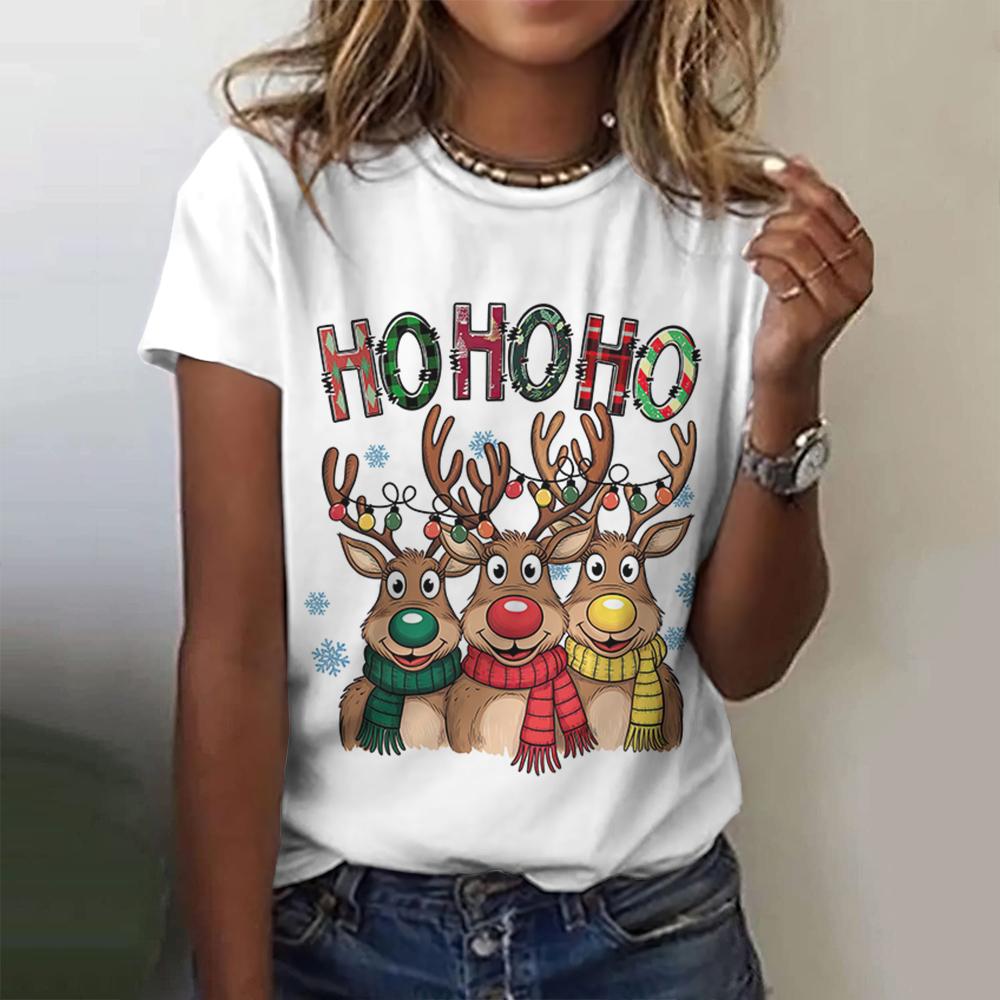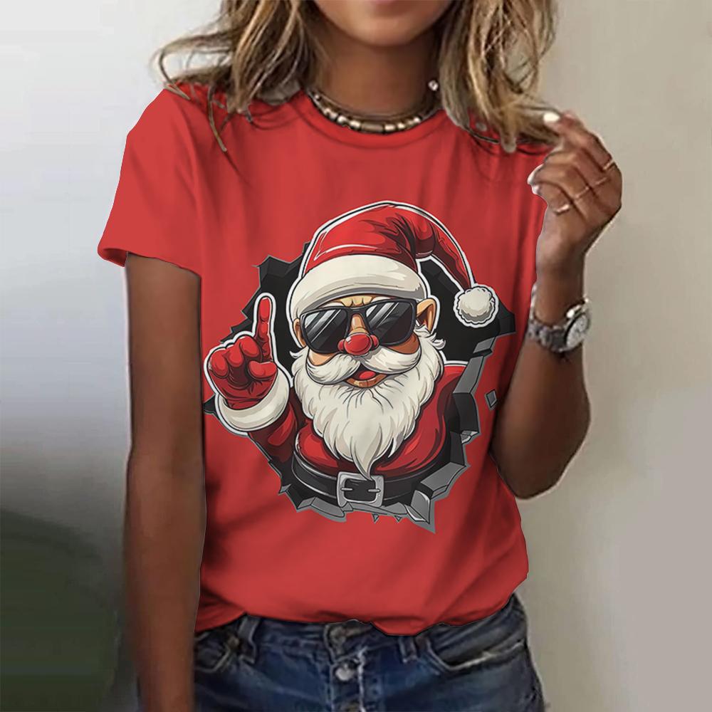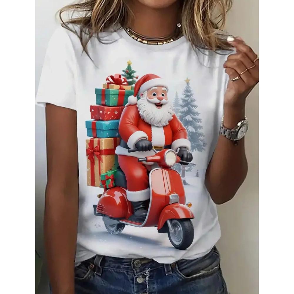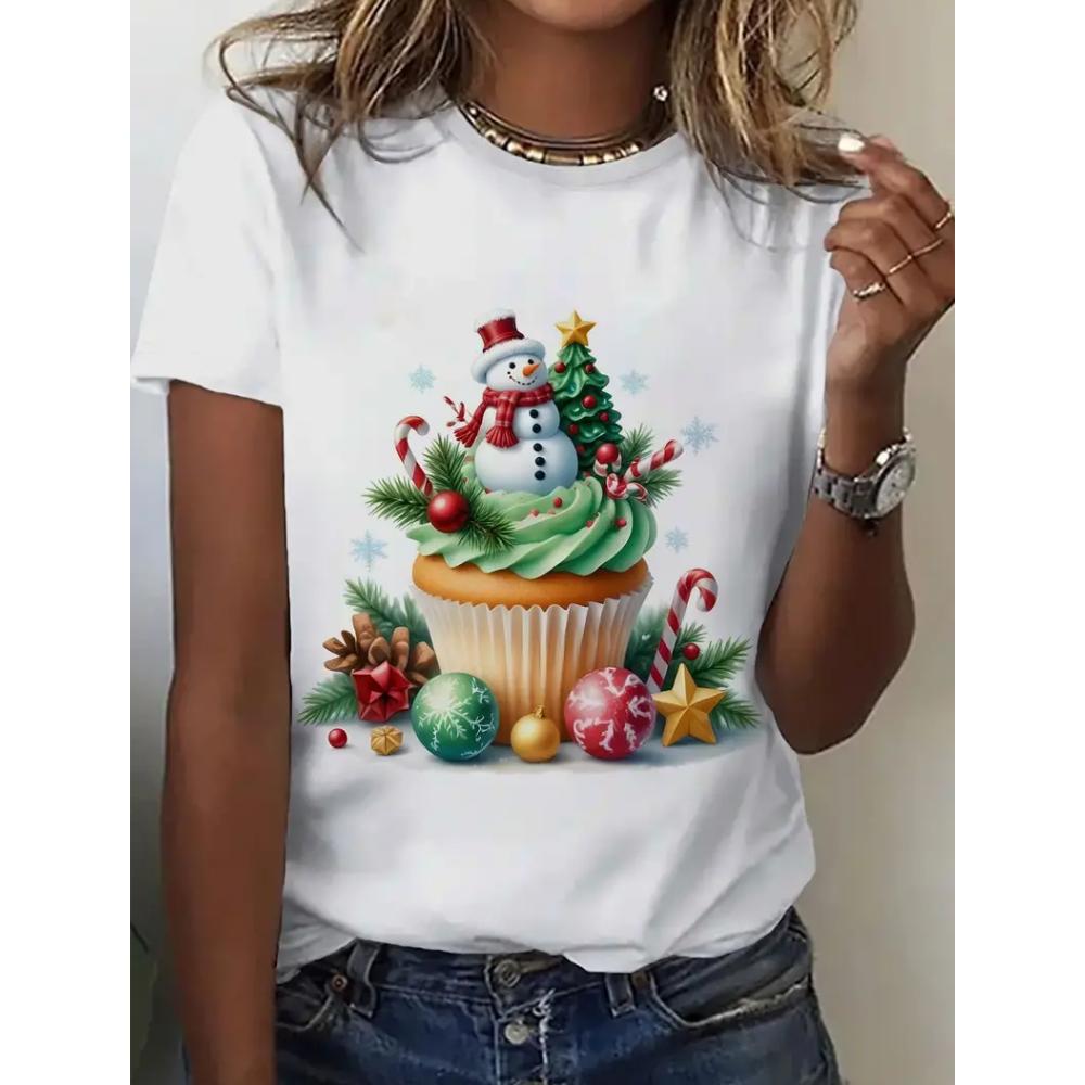 Летний топ с круглым вырезом и 3D рождественским принтом, модные повседневные женские футболки с короткими рукавами