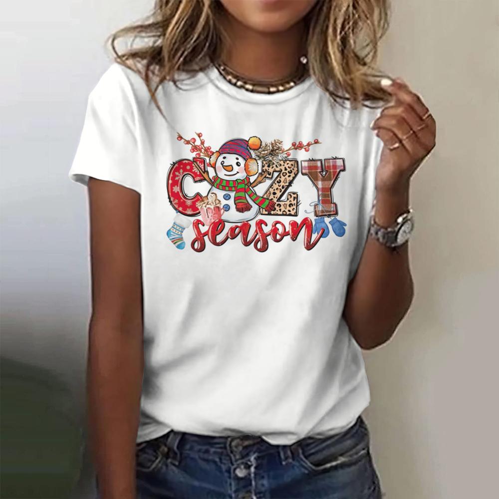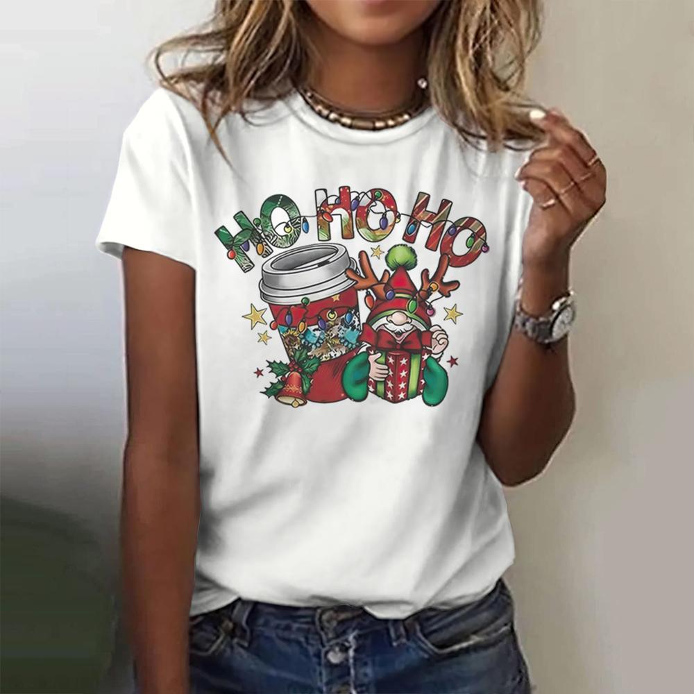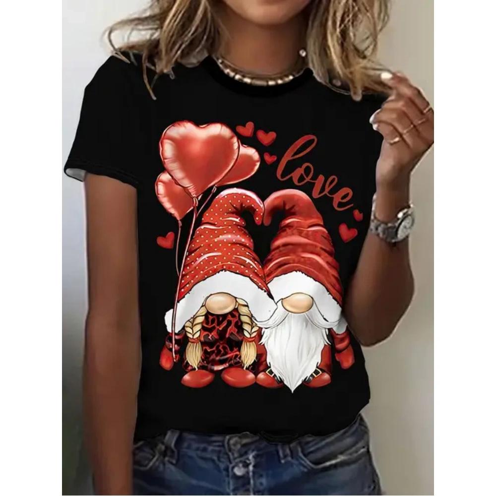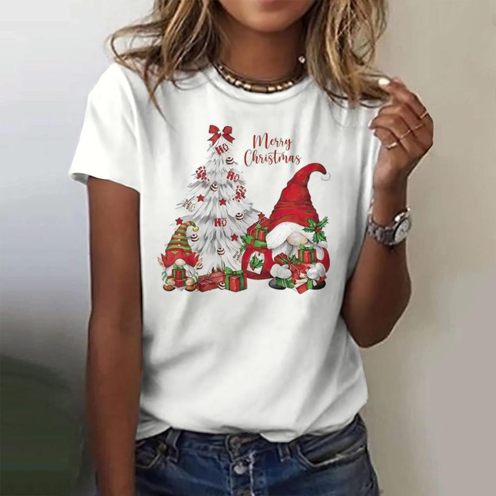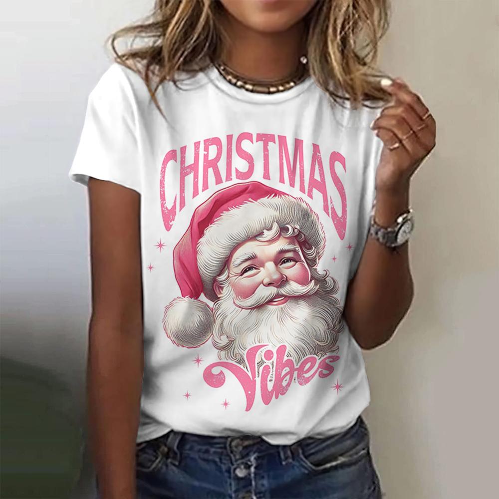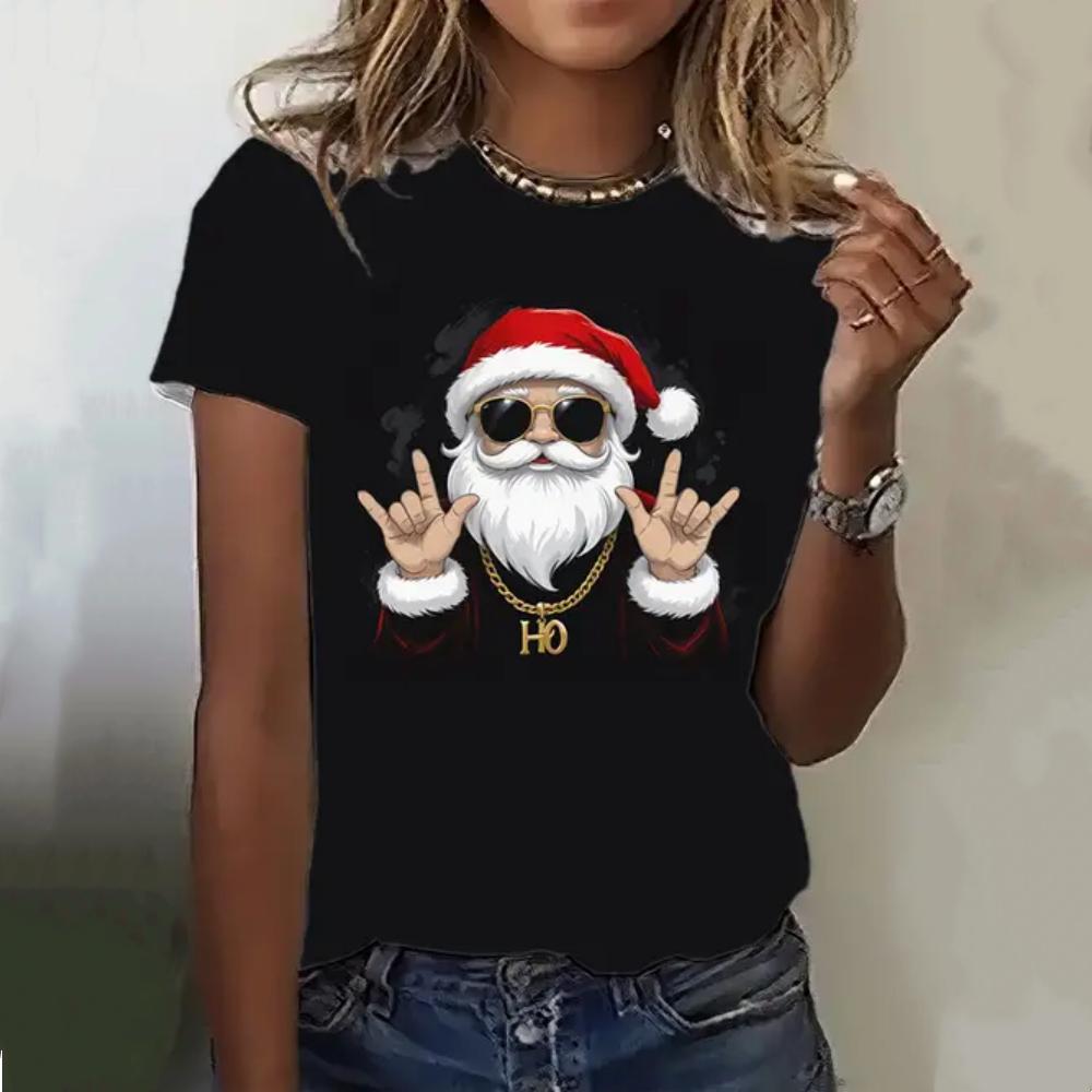 Летний топ с круглым вырезом и 3D рождественским принтом, модные повседневные женские футболки с короткими рукавами