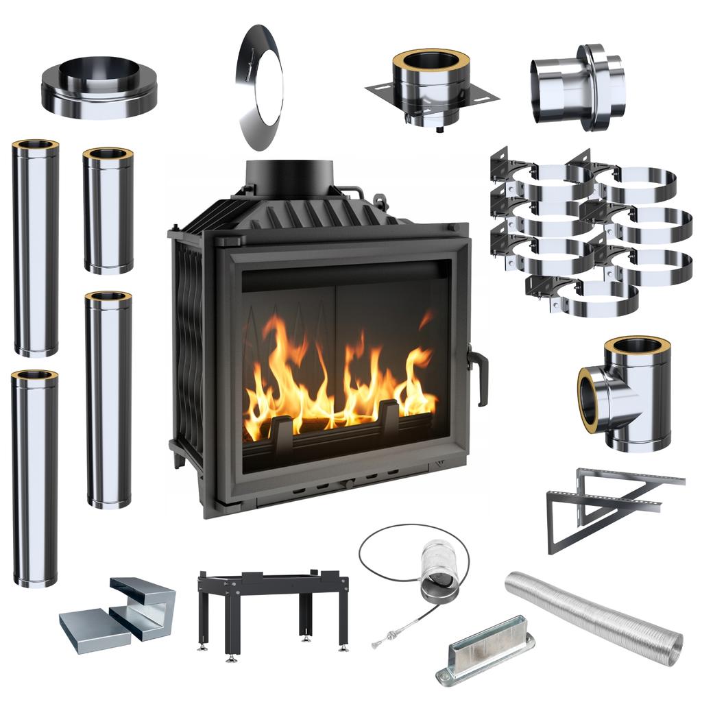 Каминная вставка KRATKI Antek 10 кВт Ø 180 Чугунный внешний дымоходный комплект