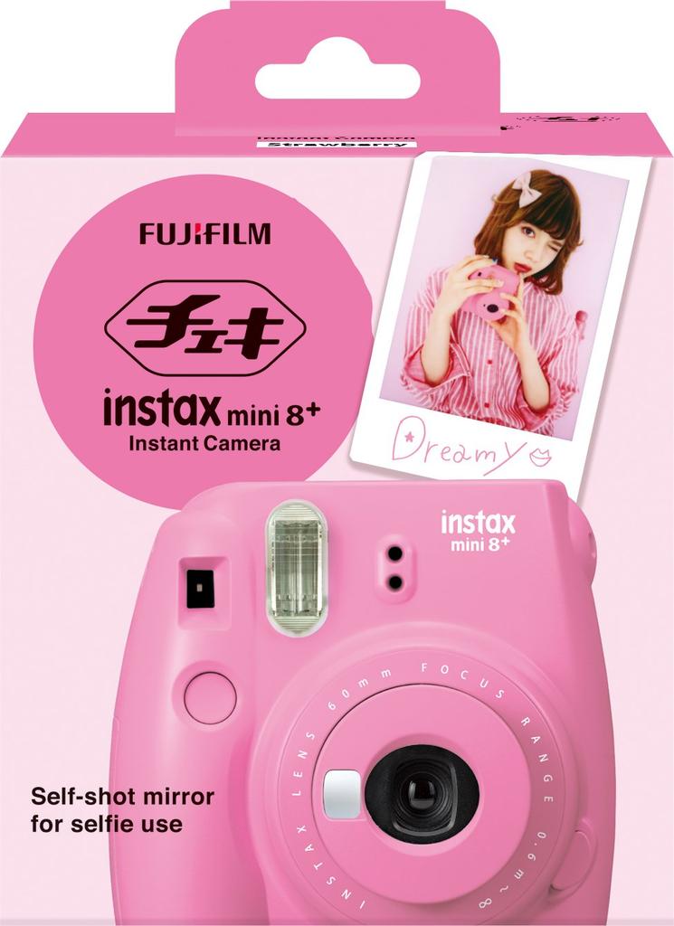 Fujifilm Фотоаппарат Instax Mini8 Plus с объективом и оригинальным ремешком Strawberry INS MINI 8P STRAWBERRY крупным планом