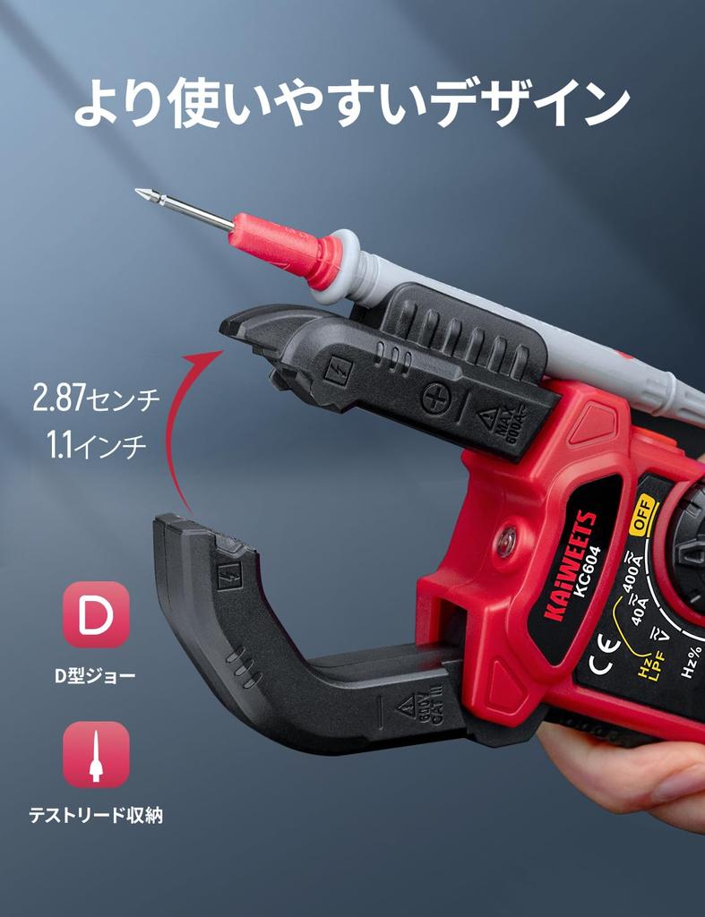 【D-образные зажимы】В отличие от других тестеров на рынке, клещи-мультиметры имеют характерную D-образную конструкцию, а зажимы могут открываться на расстояние до 1,1 дюйма, что обеспечивает удобный и безопасный способ зажима различных кабелей.. Тестовые провода можно закрепить, а провода защитить и хранить, когда они не используются.