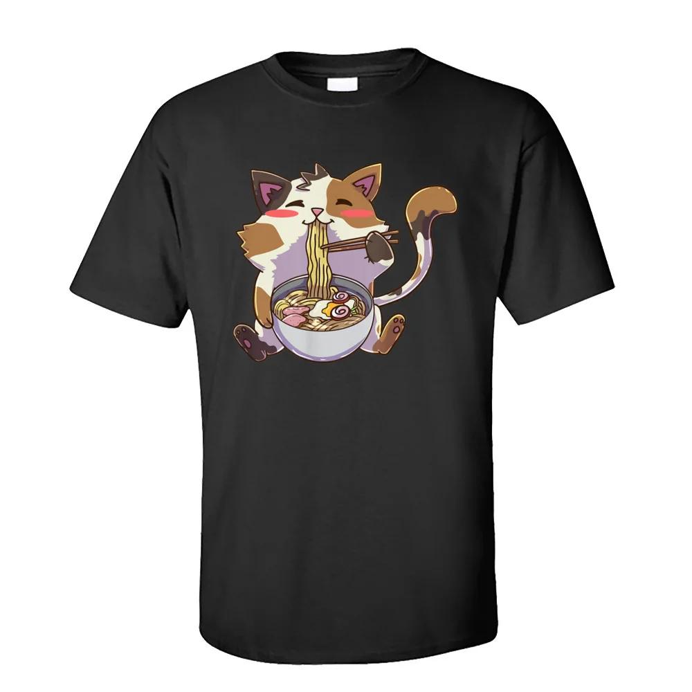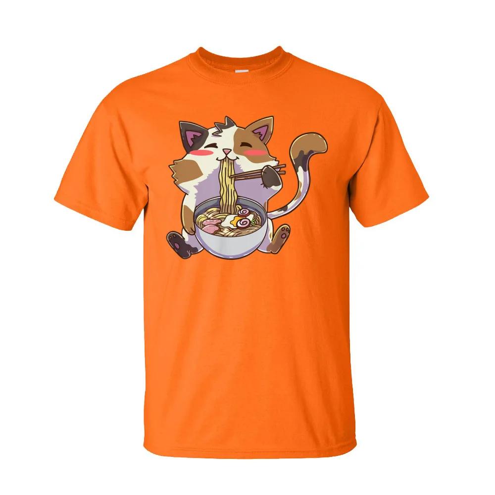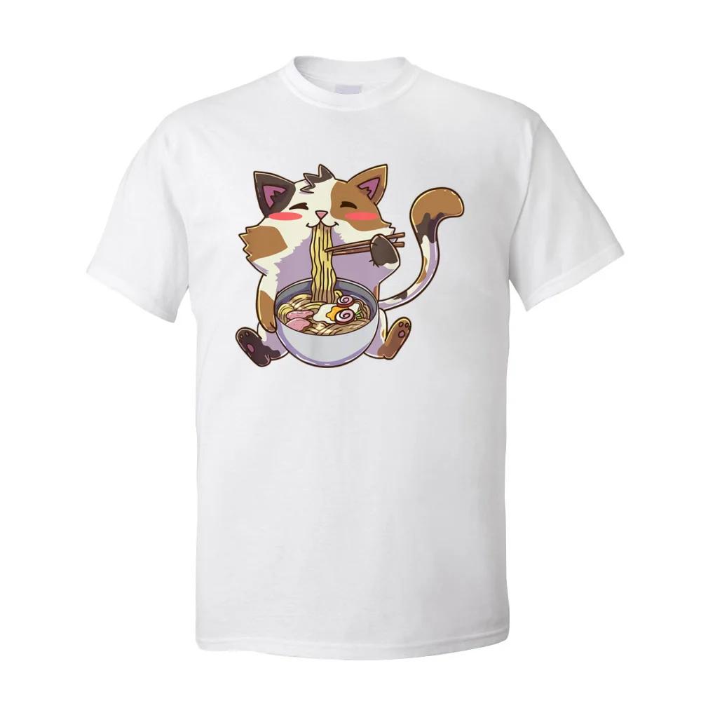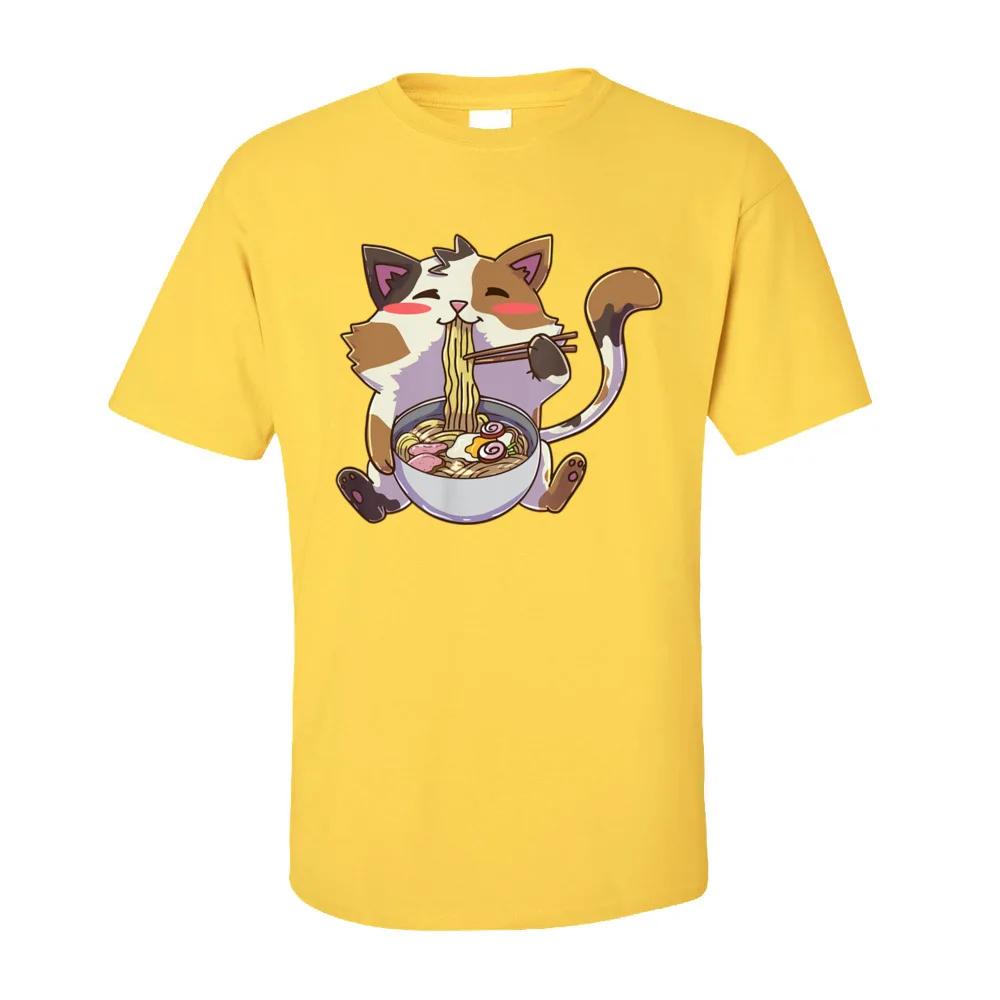 Персонализированные футболки мужские аниме кот рамен каваи нэко футболка 100% хлопок взрослые футболки летняя одежда кот лапша