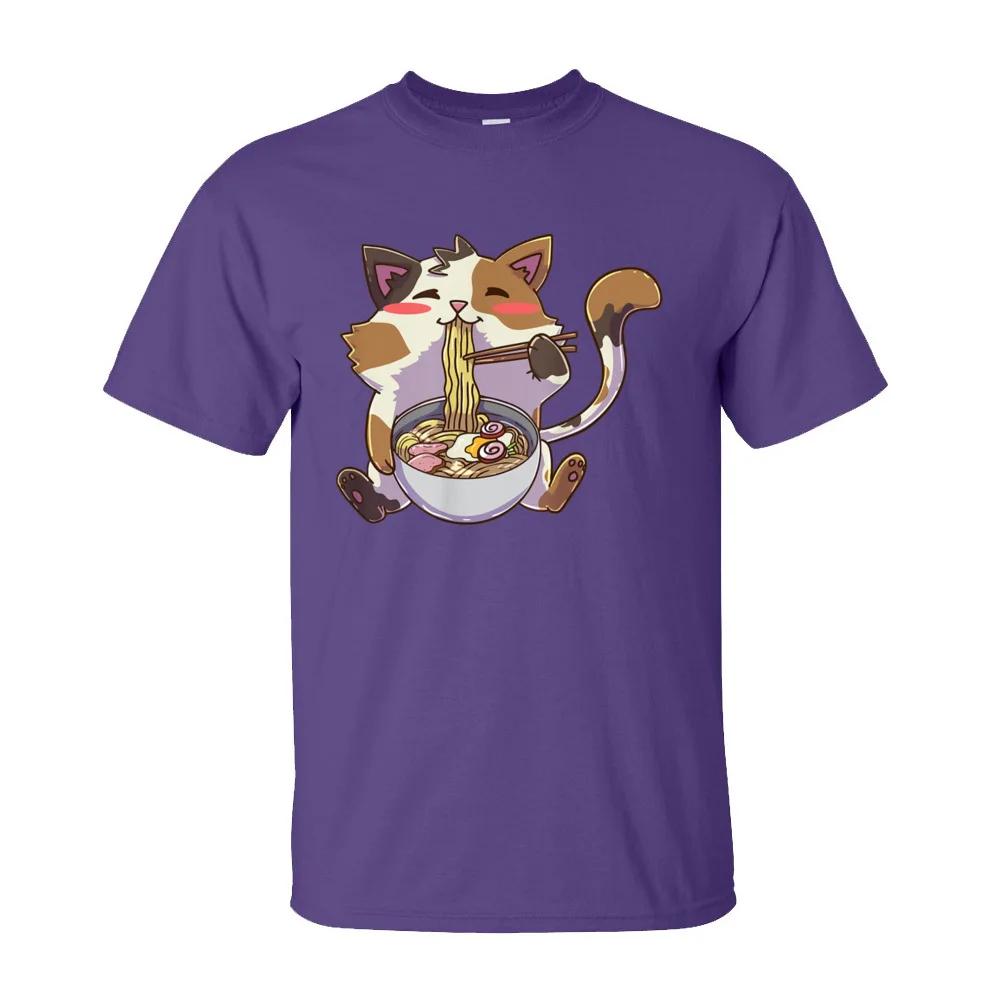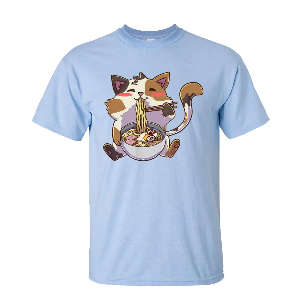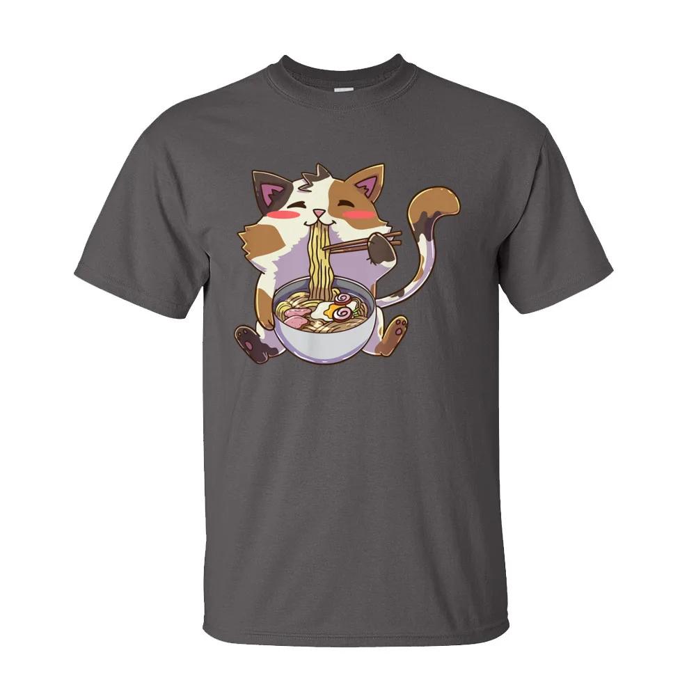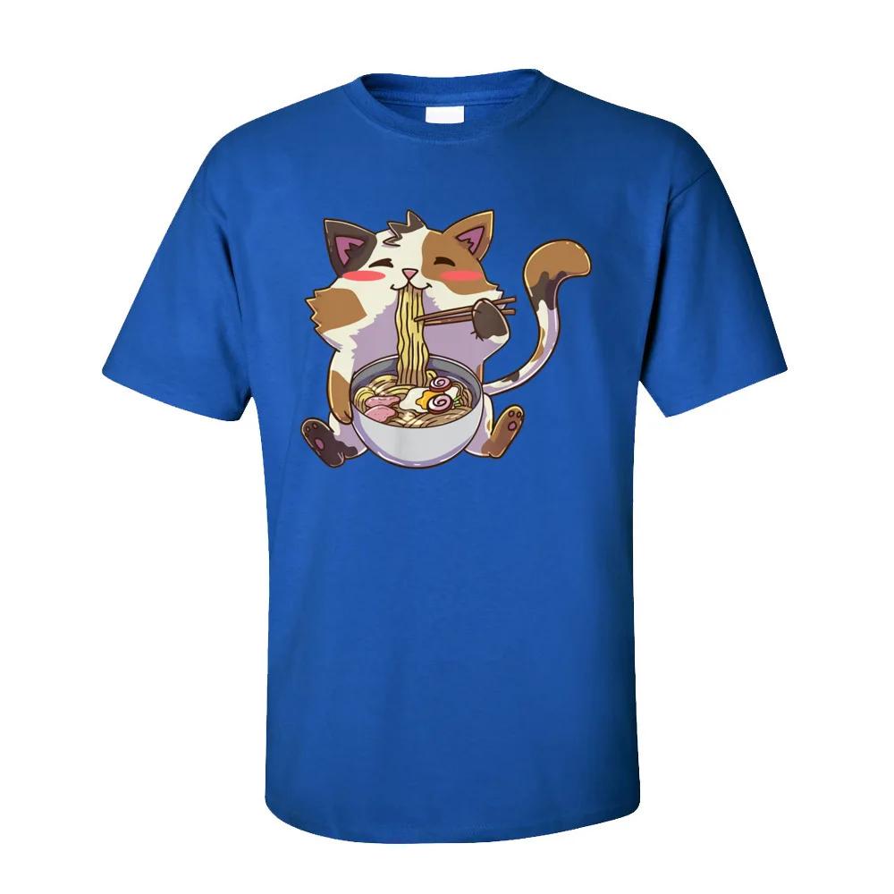 Персонализированные футболки мужские аниме кот рамен каваи нэко футболка 100% хлопок взрослые футболки летняя одежда кот лапша