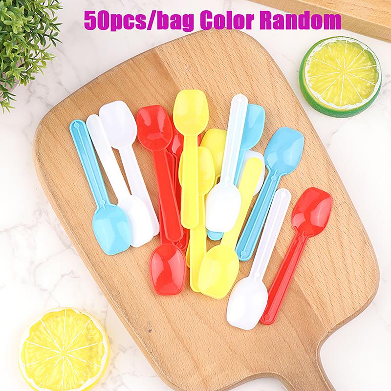 50 шт. Пластиковая ложка для десерта, ложка для мороженого, семейные ложки, пластиковые ложки для супа, симпатичная дегустационная ложка, отлично подходит для вечеринок, столовые приборы